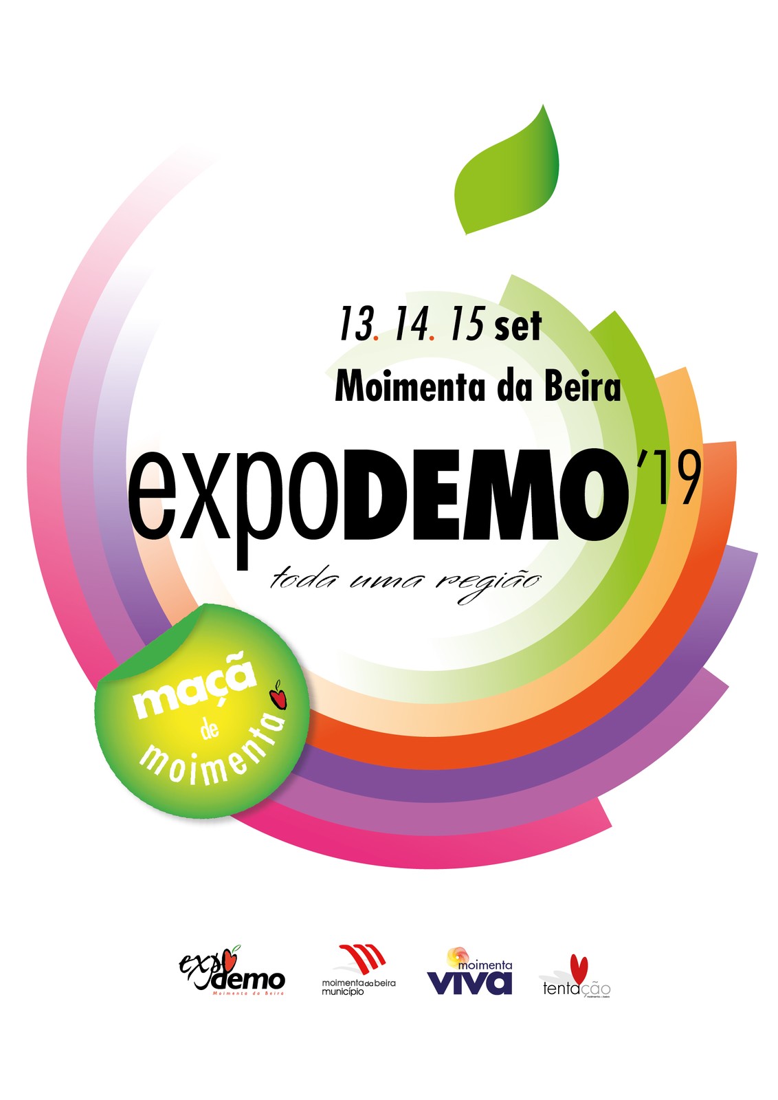 A Expodemo vai realizar-se este ano de 2019 nos dias 13, 14 e 15 de setembro, como sempre um fim-de-semana alargado (sexta, sábado e domingo), e acolhe o melhor cartaz de todos os certames da região, certame que já tem um público fiel, mas promete boas sensações a todos. O evento é uma feira de negócios, é a Festa da Maçã, fruto da terra, das raízes e da Luz, que se assume hoje como um importante cartaz turístico e cultural organizado pela Câmara Municipal de Moimenta da Beira, coração da maçã.