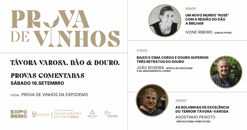 Ivone Ribeiro, da garrafeira Garage Wines, vai versar sobre “Um novo mundo ´rosé´ com a região do Dão a brilhar”; João Roseira, da Quinta do Infantado e do simplesmente...Vinho?, sobre “Baixo e cima corgo e douro superior: três retratos do Douro”; e Agostinho Peixoto, da Espumanteria Portuguesa, sobre “As bolhinhas de excelência do terroir Távora-Varosa”.