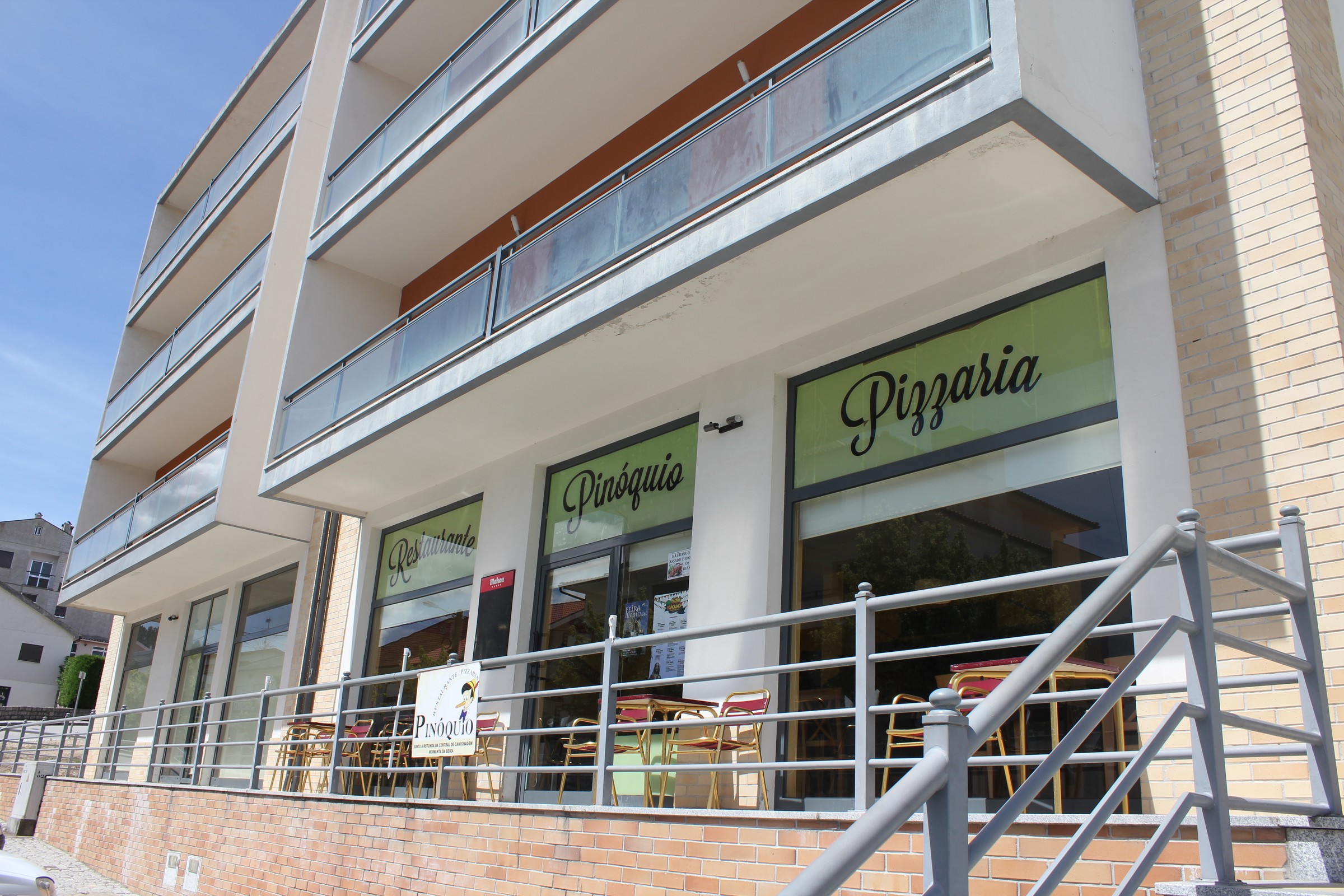 Restaurante moderno e simples, de grande dimensão e esplanada