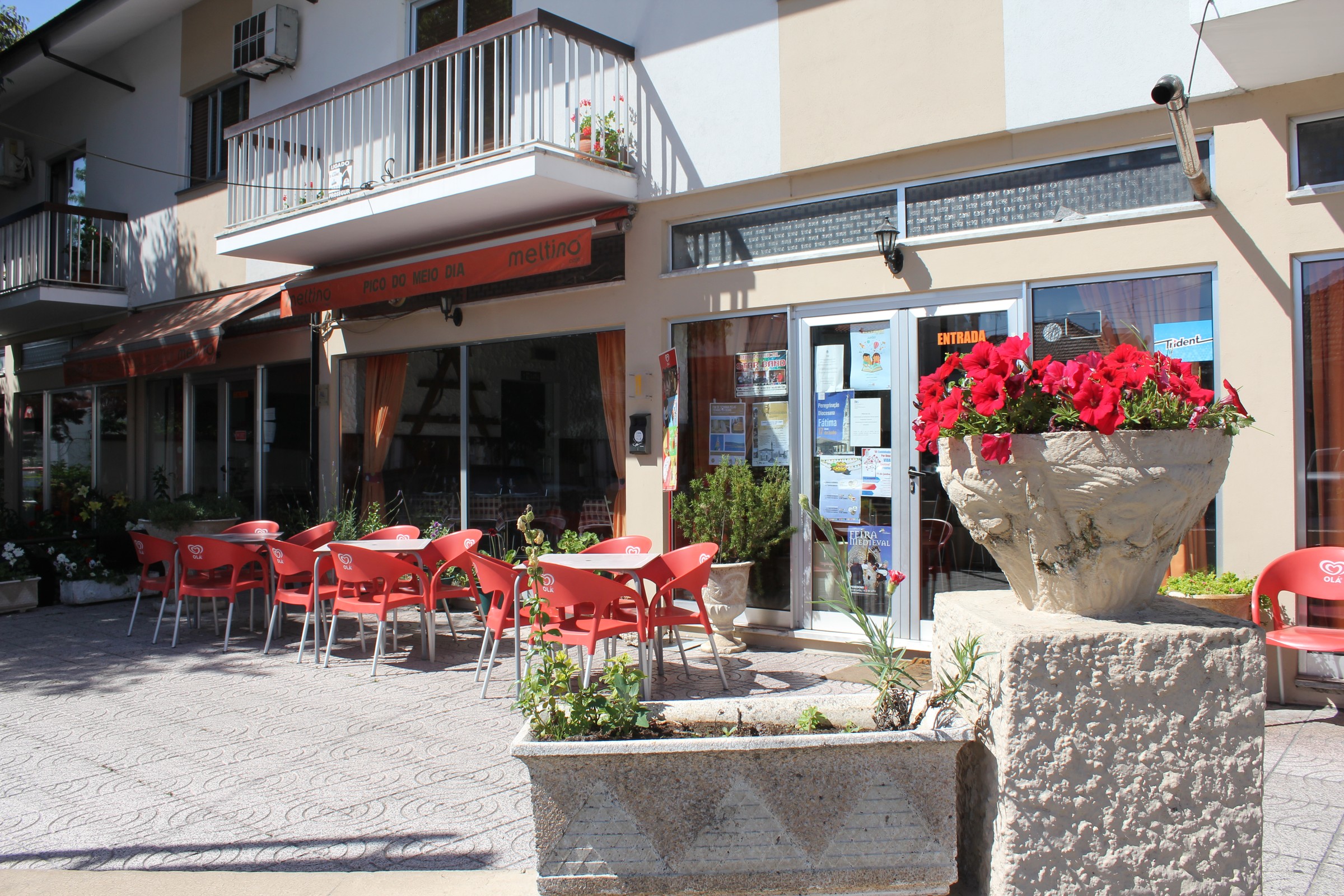 Restaurante com duas salas, uma simples e outra mais requintada, de grandes dimensões e com esplanada