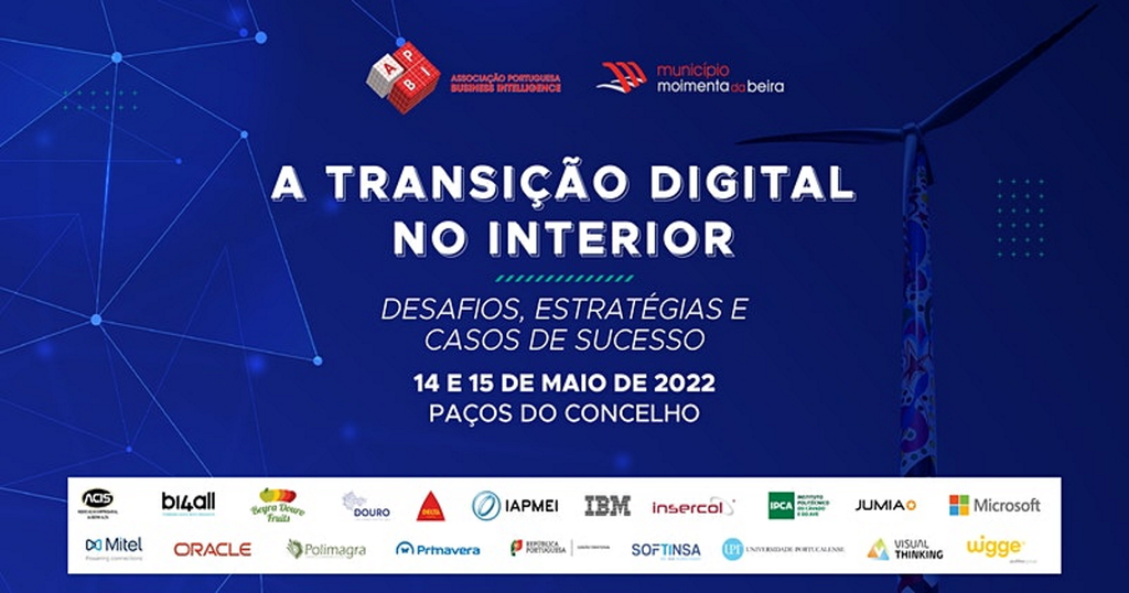 A Associação Portuguesa de Business Intelligence (APBI) e o Município de Moimenta da Beira vêm por este meio agradecer a sua presença na Conferência "A Transição Digital no Interior - Desafios, estratégias e casos de Sucesso".