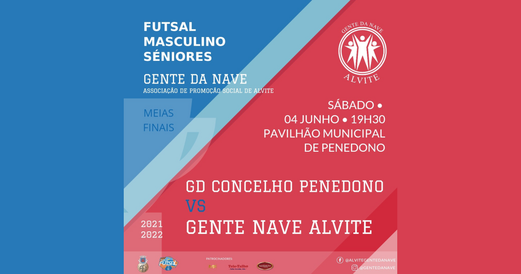 No próximo sábado, 4 de junho, às 19h30, no Pavilhão Municipal de Penedono, a equipa sénior masculina de Futsal do “Gente da Nave”, da Associação de Promoção Social de Alvite, Moimenta da Beira, defronta a congénere do “GD Concelho de Penedono” no jogo das meias-finais da principal Taça de Futsal da Associação de Futebol de Viseu. O conjunto que ganhar este jogo disputará a final da Taça 2021/2022 em Viseu, no dia 10 de junho.