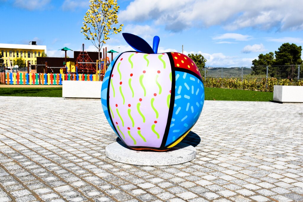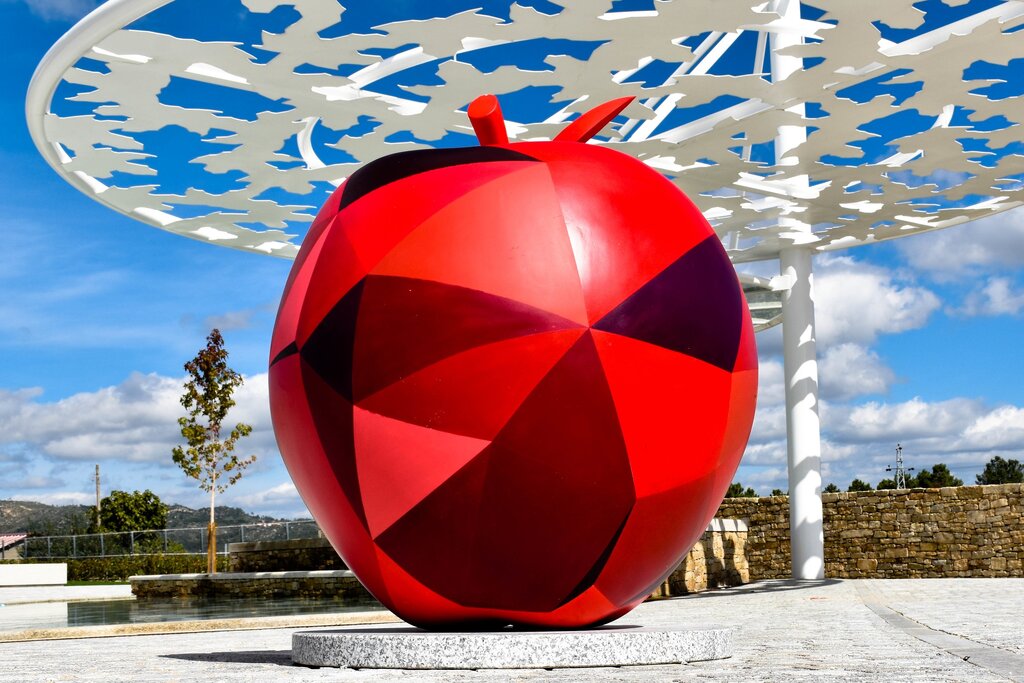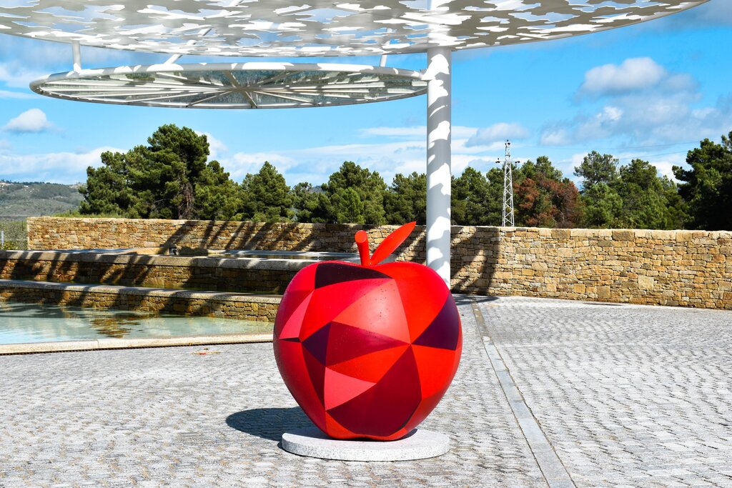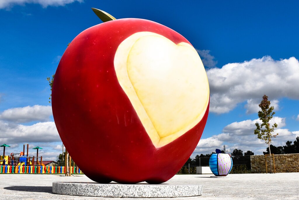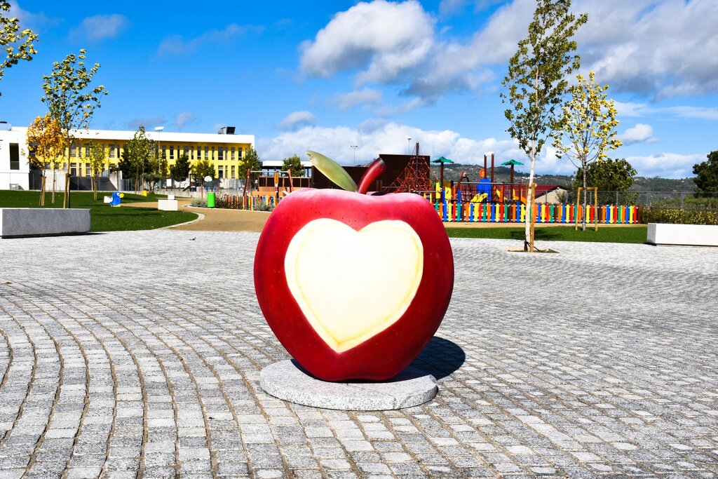 As cinco maçãs, de dimensões algo significativas, estão todas em exposição no novo Parque da Alagoa, na alameda do Centro Escolar, em Moimenta da Beira.