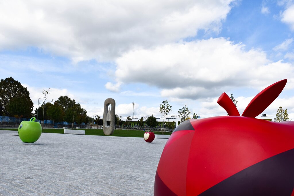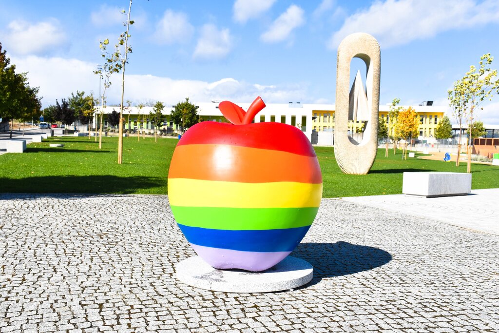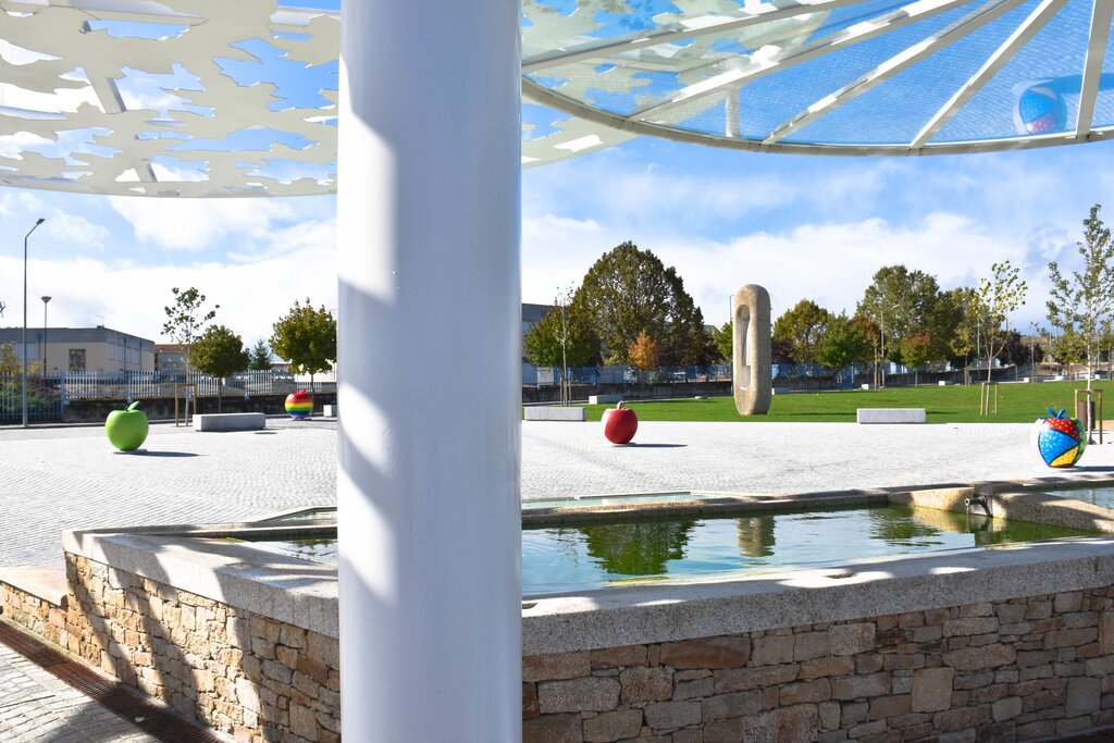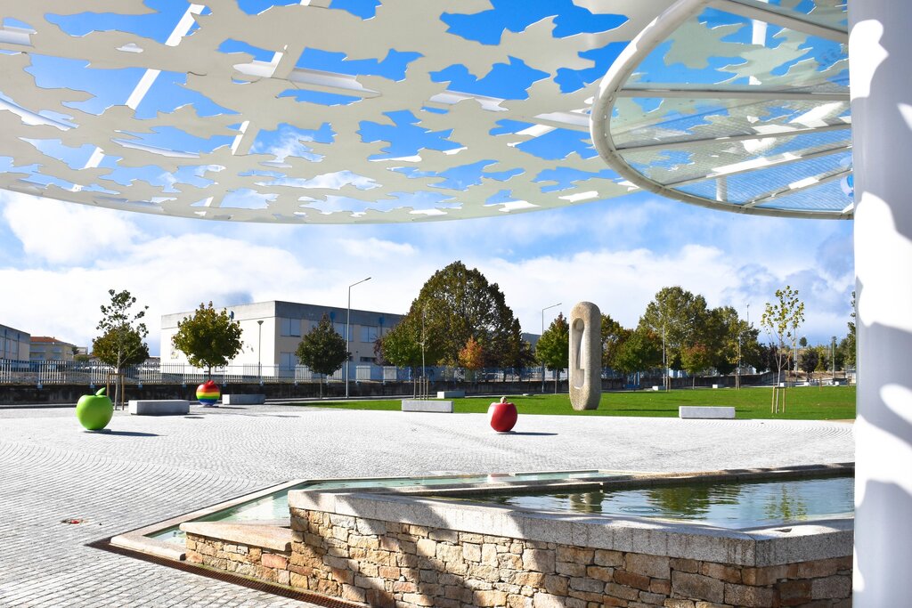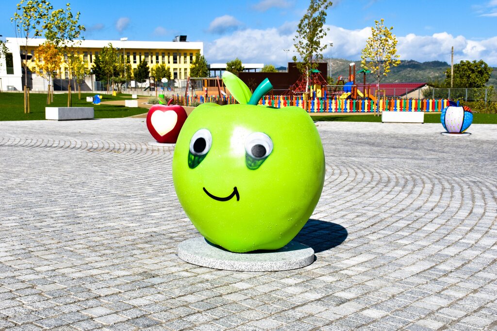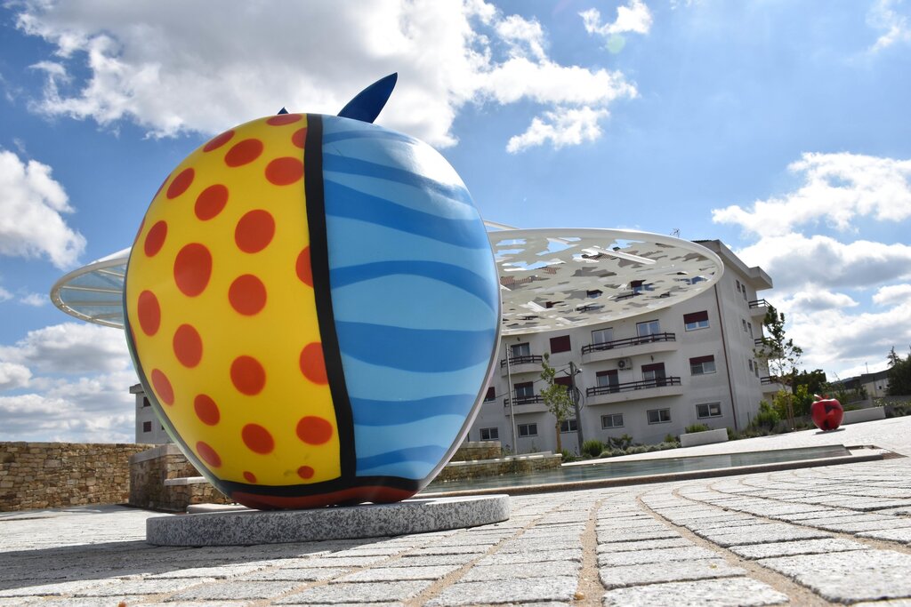 As cinco maçãs, de dimensões algo significativas, estão todas em exposição no novo Parque da Alagoa, na alameda do Centro Escolar, em Moimenta da Beira.