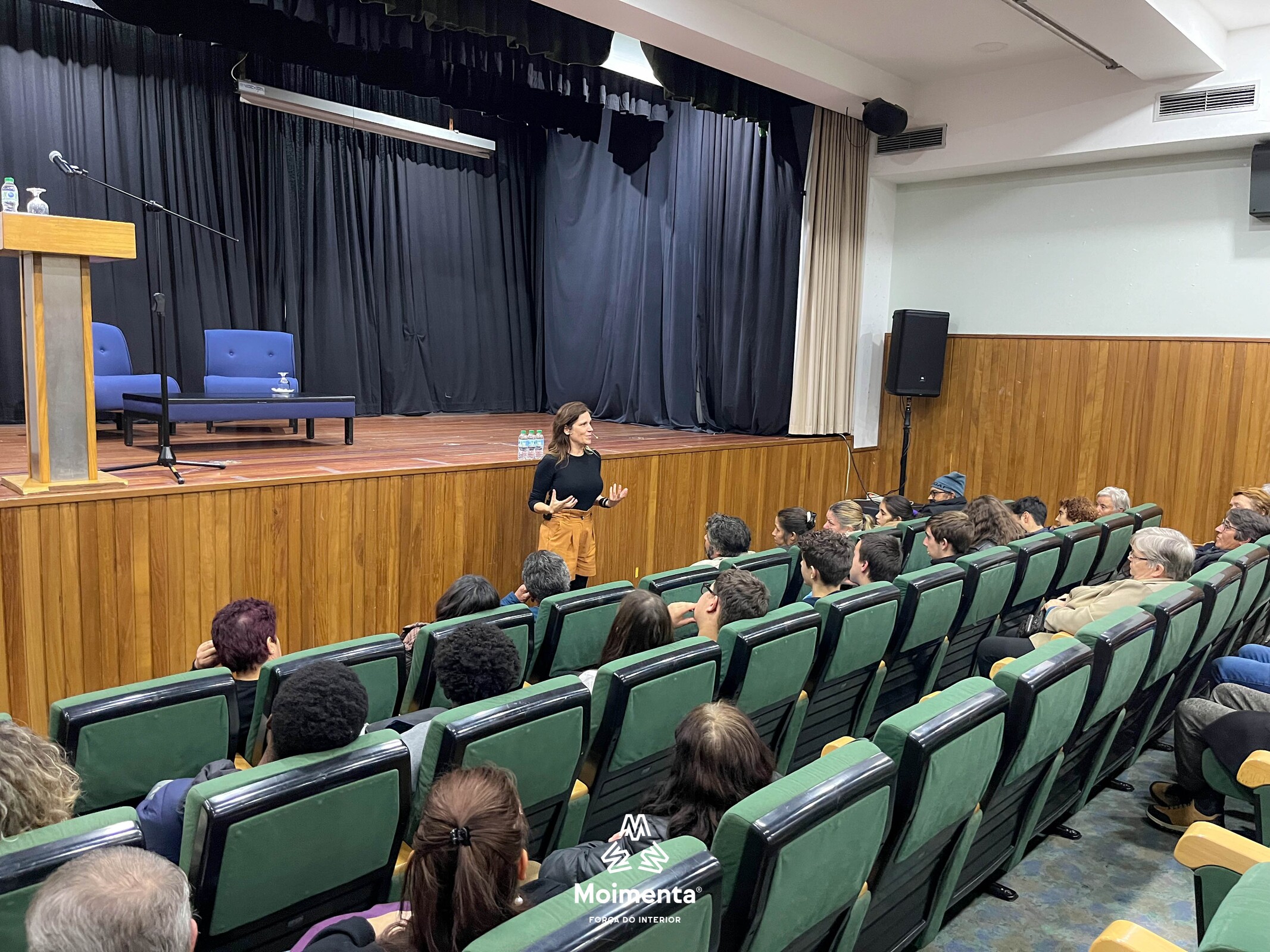 Foi uma sessão cheia de interatividade com o público. Duas horas em que Sofia Abreu, da Associação Tocar n’ Alma, orientou abordagens à volta da violência doméstica e no namoro. Primeiro, ‘vestindo-se’ de “Palhaça”, para de forma interativa e divertida criar ligação com as pessoas presentes na sala; depois, em diálogo com o auditório, para desmitificar crenças, quebrar tabus e preconceitos sobre o tema e os diferentes tipos de violência física, psicológica, sexual, social, verbal e económica; e por fim, contando a sua própria história de violência doméstica, um testemunho onde mostrou como é possível recomeçar uma nova vida.