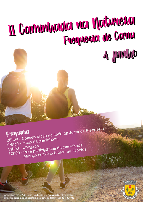 Estão abertas até dia 27 de maio as inscrições para a 2ª Caminhada na Natureza, na Freguesia de Caria, concelho de Moimenta da Beira. A iniciativa vai realizar-se no dia 4 de junho, um domingo.