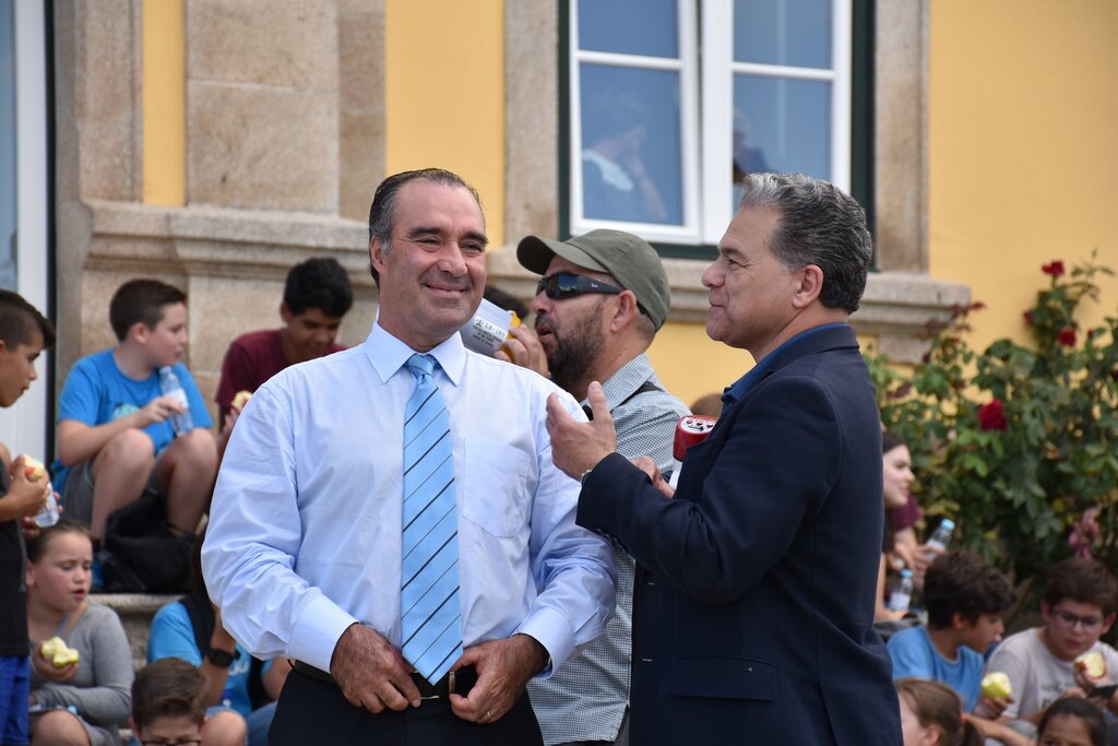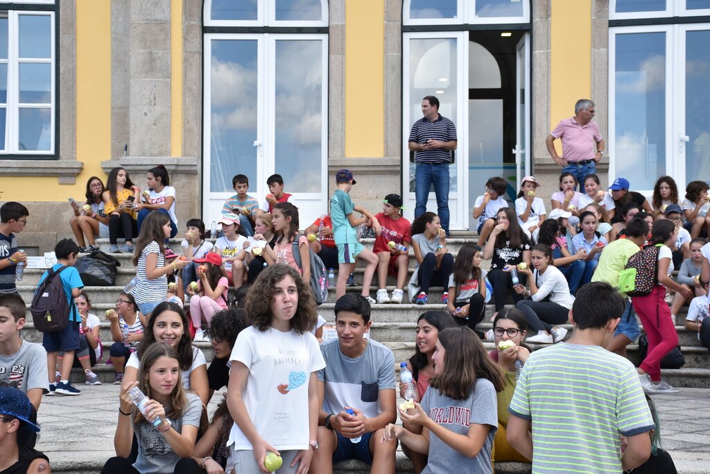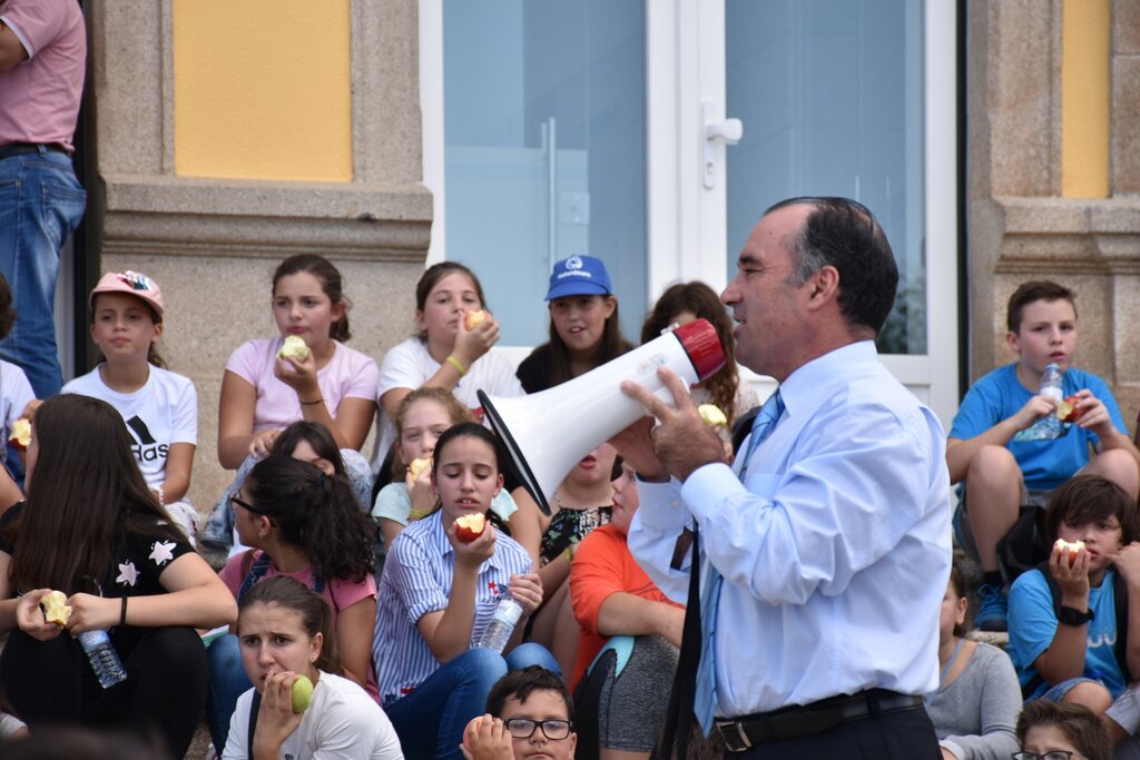 Em frente à Câmara Municipal, onde foram recebidos pelo Chefe do Executivo, José Eduardo Ferreira, houve oferta de maçãs, a saudável e crocante maçã de Moimenta da Beira, e água engarrafada.