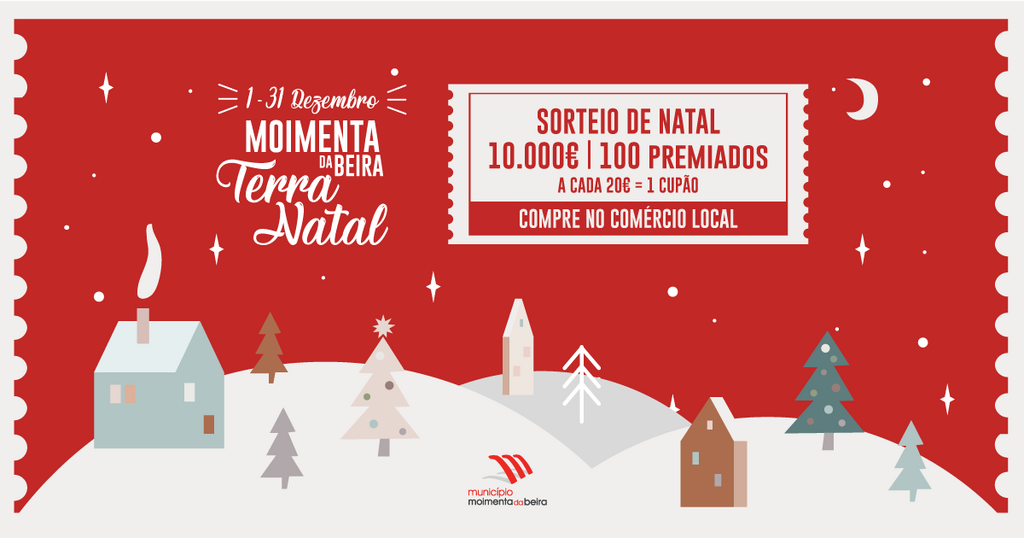 Chegou o Natal e, com vista a incentivar as compras no comércio local, o Município de Moimenta da Beira vai lançar uma campanha, de 1 a 31 de dezembro 2021, onde vai atribuir um total 10.000€ de incentivo aos clientes do comércio local. Serão sorteados 100 premiados com um valor de 100€.