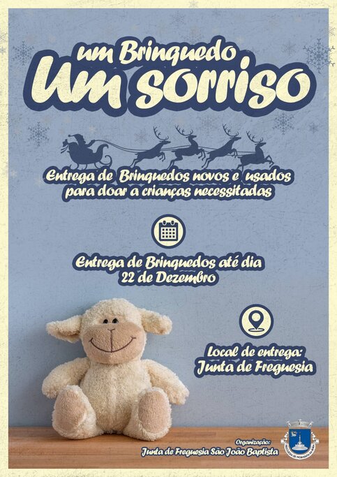 Escolha um brinquedo usado, em bom estado, ou novo e, até ao dia 22, entregue-o no edifício da Junta de Freguesia, das 9h00 às 17h30, de segunda a sexta-feira.