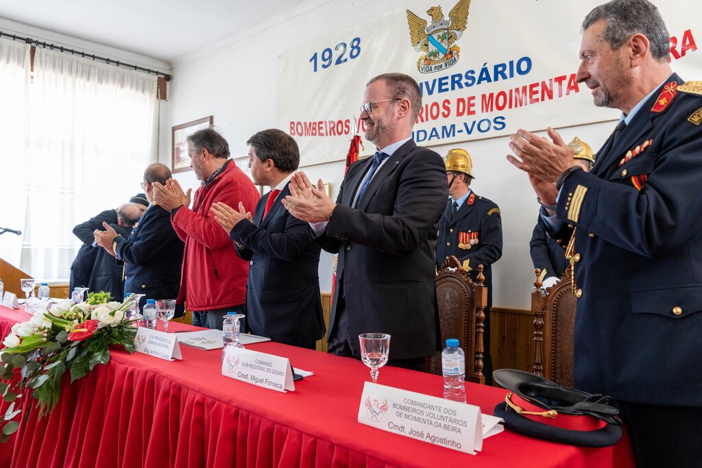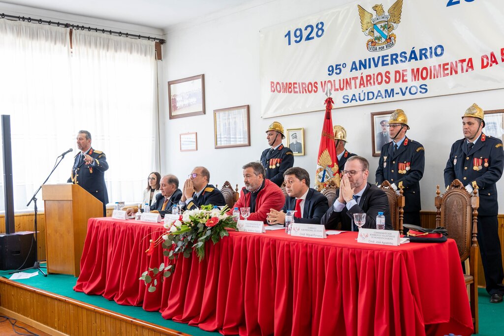 Na cerimónia de tomada de posse, no salão mais nobre do Quartel de Bombeiros, que esteve lotado, sentaram-se à mesa o Presidente da Assembleia Geral da Associação Humanitária de Bombeiros Voluntários de Moimenta da Beira (AHBV MB), Fernando Veríssimo Salgueiro; o Presidente da Direção da AHBV MB, Hélder de Jesus Tavares; o Presidente da Federação de Bombeiros do Distrito de Viseu e simultaneamente representante da Liga dos Bombeiros Portugueses, Marcos Fonseca; o Comandante Sub-Regional do Douro, Miguel Fonseca; o Vice-Presidente da Câmara Municipal de Moimenta da Beira, António Caiado; e o Comandante da Corporação de Bombeiros Moimentenses, em regime de substituição, José Agostinho Aguiar, que daria o lugar na mesa ao novo Comandante Carlos Soeiro Pereira, logo depois da tomada de posse deste.