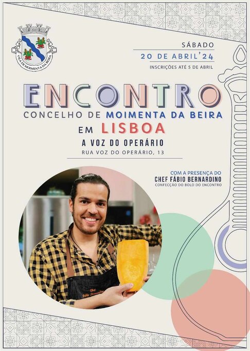 A um mês do encerramento das inscrições, os organizadores do Encontro dos Moimentenses em Lisboa anunciam a presença do Chef Fábio Bernardino no evento, e revelam que será ele também o responsável pela confecção do bolo comemorativo da iniciativa que se vai realizar no dia 20 de abril, na Voz do Operário. O Chef Fábio Bernardino é presença assídua no programa da RTP 1, “A Nossa Tarde” para além de fazer vários workshops e showcookings. o evento
