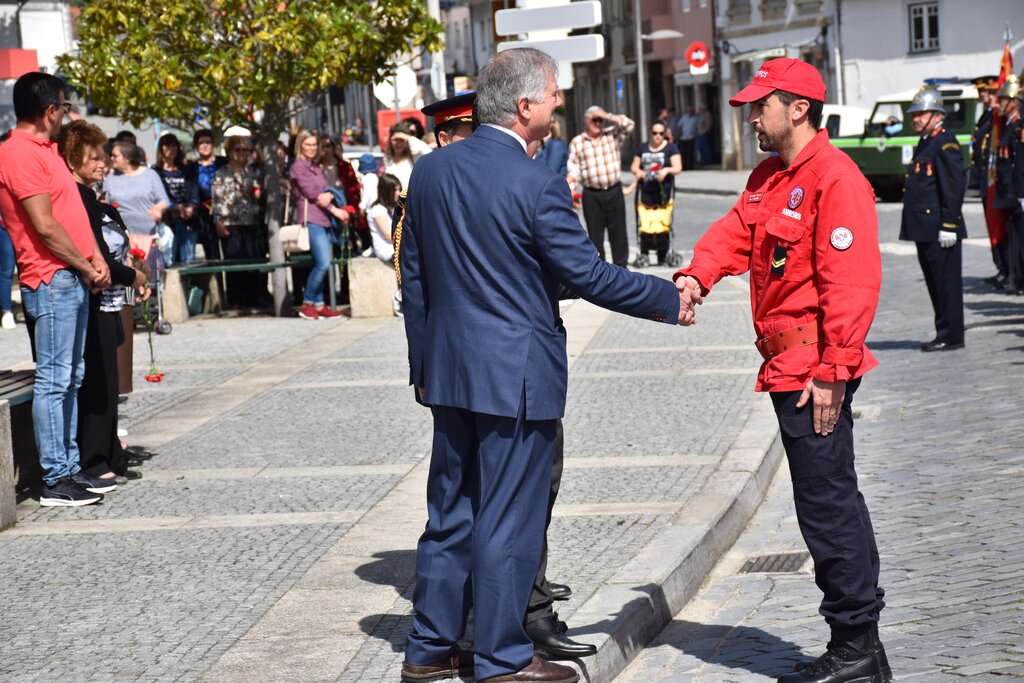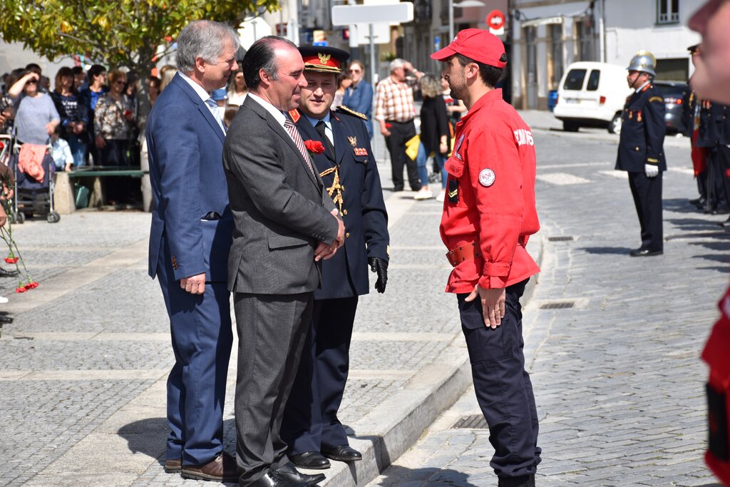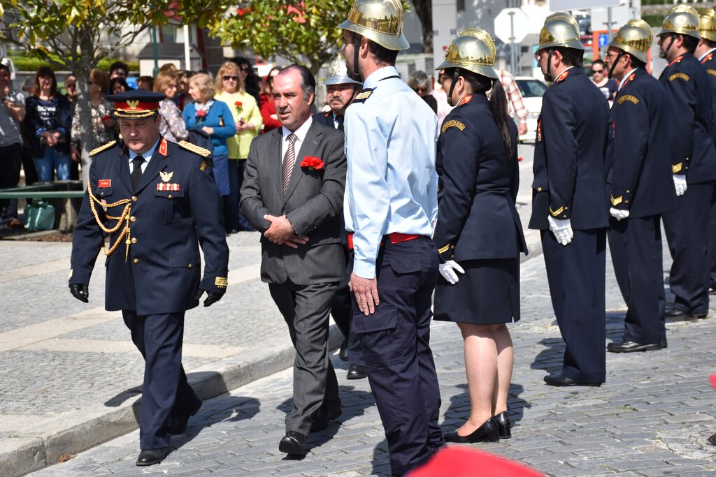 As cerimónias oficiais decorreram em frente aos Paços do Concelho, primeiro, e depois no Salão Nobre. No exterior houve o passeio do Pedaladas – Clube de Cicloturismo, a deposição de flores no conjunto escultórico que simboliza o 25 de Abril, o içar das bandeiras e a guarda de honra pelos Bombeiros Voluntários, momento sempre belo, mas este ano ainda mais bonito porque houve a primeira apresentação pública da escola de infantes e cadetes.