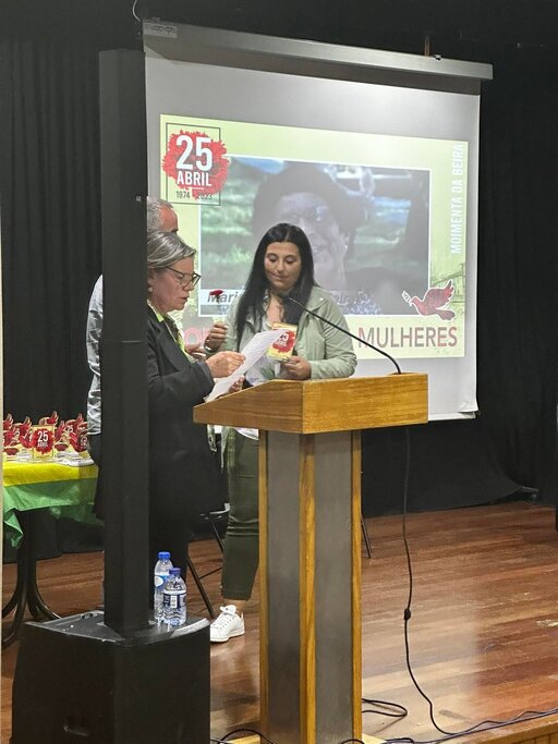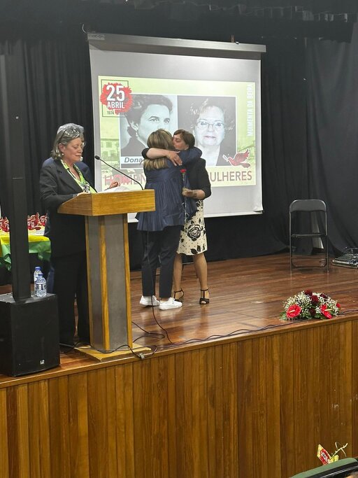 O programa, que decorreu no Auditório Municipal Padre Bento da Guia, teve início às 17 horas com um momento musical de receção à população Moimentense pela Sociedade Musical Vouzelense. Vinte minutos depois, um outro belo momento musical ‘Músicas de Abril’, protagonizado em palco por Paulo Reis, João Paulo Correia e Tiago Santos, e, logo a seguir, a sessão solene comemorativa que ficou marcada pela homenagem a um conjunto de valorosas e dedicadas mulheres de Moimenta da Beira, a quem a Junta de Freguesia quis prestar preito e tributo: Dona Lia Santos Cardia, Dona São João, Filomena Carvalho, Leonor Requeijo, Otelinda Cardoso, Isabel Pinto, Teresa Adão, Elvira Figueiredo, Gina Fernandes, Maria Augusta, Rute Branco, Maria José Costa Lima, Imelda Coelho e Maria Emília.