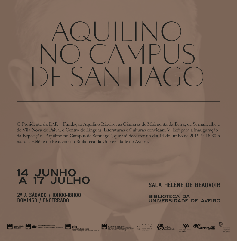 Culmina na Universidade de Aveiro, o programa das comemorações dos 100 anos da obra “Terras do Demo” de Aquilino Ribeiro, cujo primeiro momento evocativo aconteceu no dia 11 de maio, em Soutosa, Moimenta da Beira. O encerramento acontecerá com a exposição “Aquilino no Campus de Santiago”, que será inaugurada no dia 14 de junho na sala Hélène de Beauvoir da Biblioteca da Universidade de Aveiro (está aberta até dia 17 de julho). A mostra é organizada por Maria Eugénia Pereira, do Grupo “Entregéneros: Literatura e Hibridismo”, e por Paulo Neto, diretor da revista “Aquilino”. Todo o programa comemorativo nasceu e foi traçado por um conjunto de instituições aquilinianas, tendo à cabeça as autarquias das Terras do Demo: Moimenta da Beira, Sernancelhe e Vila Nova de Paiva, que presidem, rotativamente, ao Conselho de Administração da Fundação Aquilino Ribeiro.