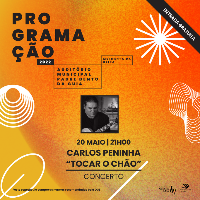 O Auditório Municipal Padre Bento da Guia, em Moimenta da Beira, vai receber na próxima sexta-feira, 20 de maio, às 21 horas, o concerto “Tocar o Chão” de Carlos Peninha. O espetáculo, inserido na programação cultural de 2022, tem entrada gratuita, mas obriga ao levantamento do bilhete de ingresso na Biblioteca Municipal Aquilino Ribeiro, durante esta semana.