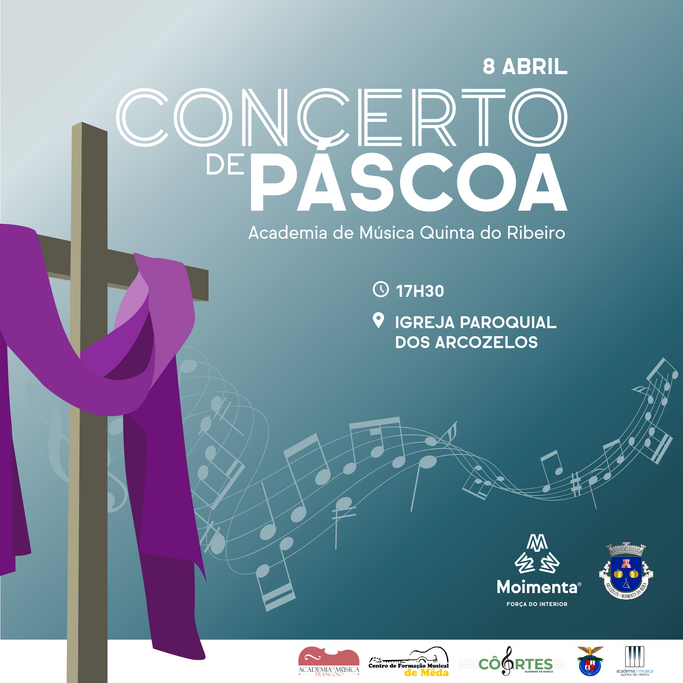 A Academia de Música Quinta do Ribeiro e músicos de outras academias apresentam-se este sábado, 8 de abril de 2023, a partir das 17h30, na Igreja Paroquial dos Arcozelos para o Concerto de Páscoa. Ao todo serão várias dezenas de instrumentistas no interior do templo. A iniciativa, patrocinada pela Câmara Municipal de Moimenta da Beira e Junta de Freguesia dos Arcozelos, é de entrada livre e aberta a toda a comunidade.