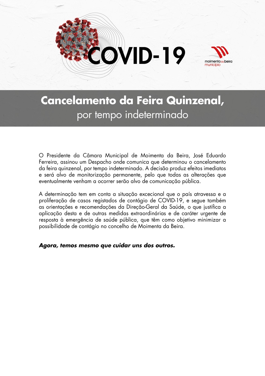COVID-19: Feira Quinzenal cancelada, por tempo indeterminado