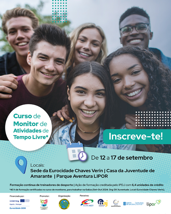 O Instituto Português do Desporto e Juventude (IPDJ) organiza, de 12 a 17 de setembro, o Curso de Monitor de Atividades de Tempo Livre, que está acreditado para treinadores de desporto, com 6,4 unidades de crédito e tem 40 horas de formação reconhecidas, para quem quiser tirar um outro curso de Monitor de Atividades de Tiempo Libre, para trabalhar na Galiza. As inscrições estão abertas até dia 6 de setembro deste mês de setembro.