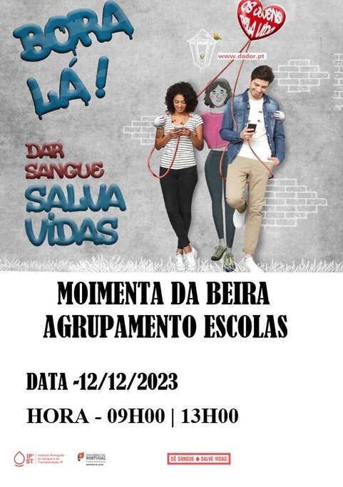 O Centro de Sangue e da Transplantação de Coimbra vai promover na próxima terça-feira, 12 de dezembro, das 9h00 às 13h00, uma Colheita de Sangue nas instalações do Agrupamento de Escolas de Moimenta da Beira.
