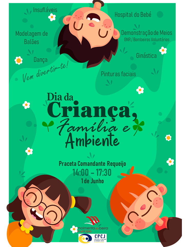 No sábado, 1 de junho, é comemorado o Dia Mundial da Criança, mas em Moimenta da Beira a efeméride é assinalada chamando à festa a Família e os ideais do Ambiente. Vai acontecer tudo na Praça Comandante Requeijo durante a tarde (quase) toda desse dia.