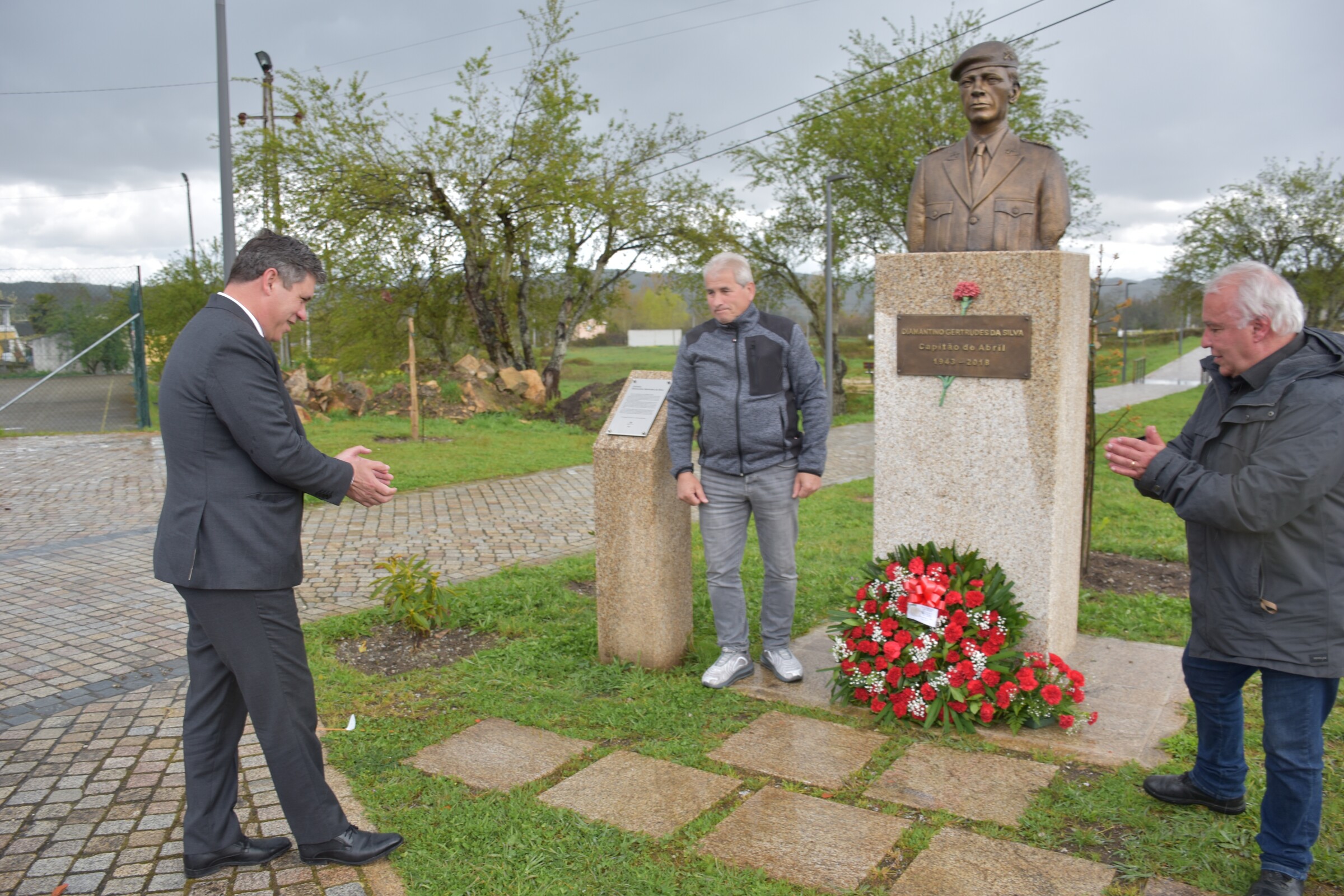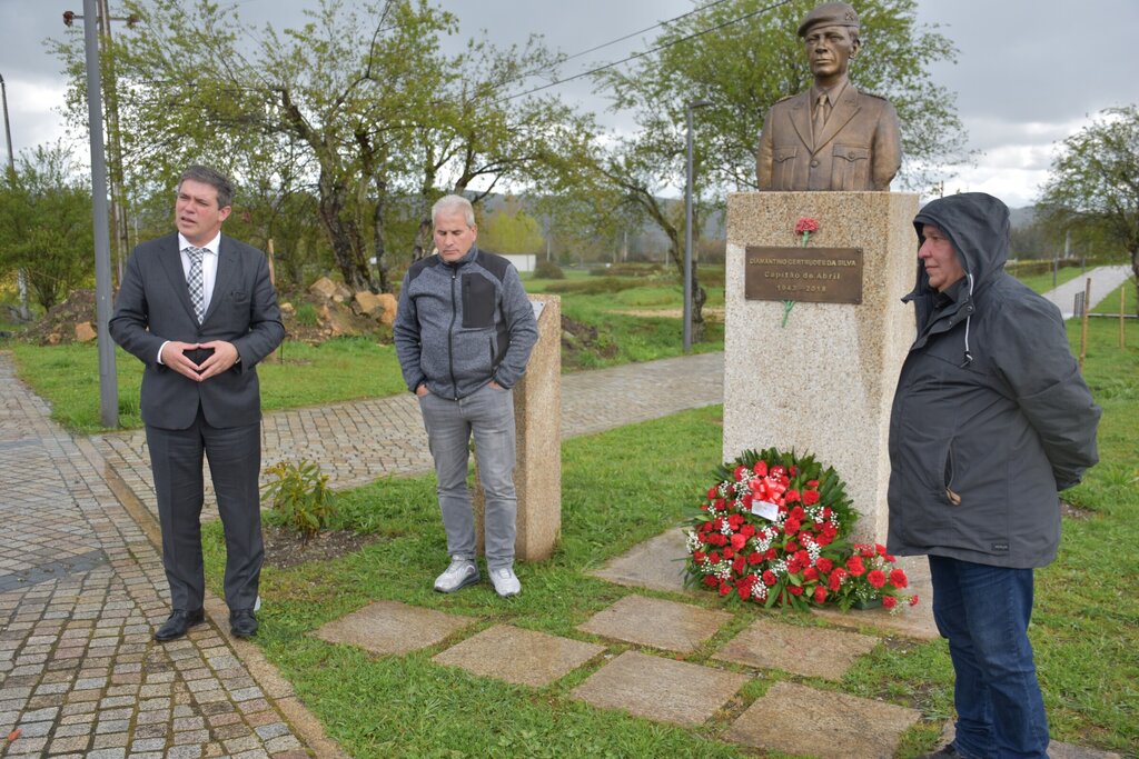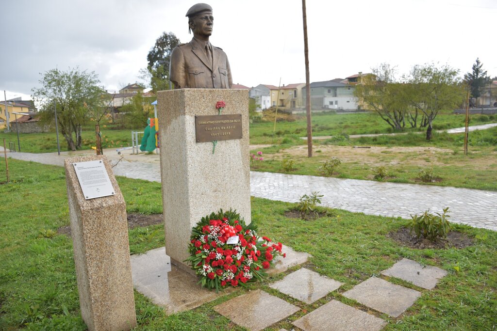 Relembrando a data e honrando Diamantino Gertrudes da Silva, a União de Resistentes AntiFascistas Portugueses (URAP) colocou esta quarta-feira uma coroa de flores junto ao seu busto, no parque que leva o seu nome situado na vila de Alvite, Moimenta da Beira, onde nasceu, como uma forma de recordar a sua vida de exemplar militar de Abril e a sua bravura quando a nação lhe exigiu uma postura estratégica. “Ele foi um dos heróis de Abril, um dos libertadores”, lembrou António Vilarigues, dirigente da URAP. “O coronel Diamantino Gertrudes da Silva é uma das principais figuras da nossa história contemporânea ligada à Revolução dos Cravos. Devemos-lhe muito, estamos-lhe muito gratos”, sublinhou Paulo Figueiredo, Presidente da Câmara Municipal, que fez questão de estar presente na cerimónia de homenagem.