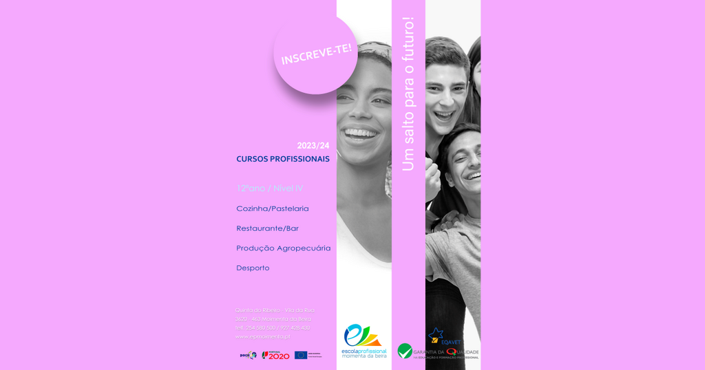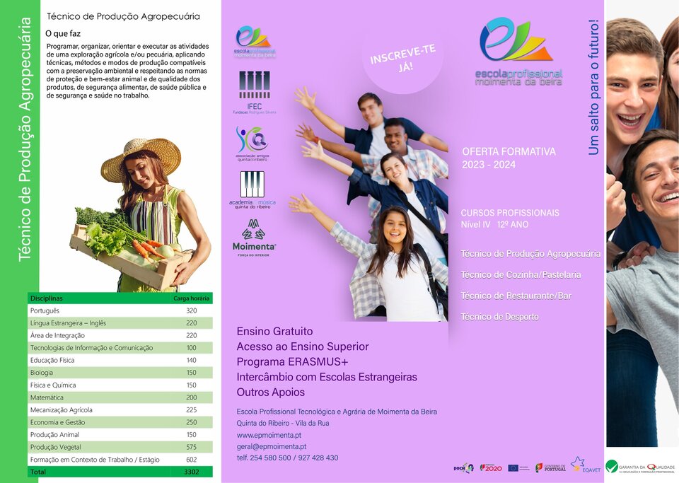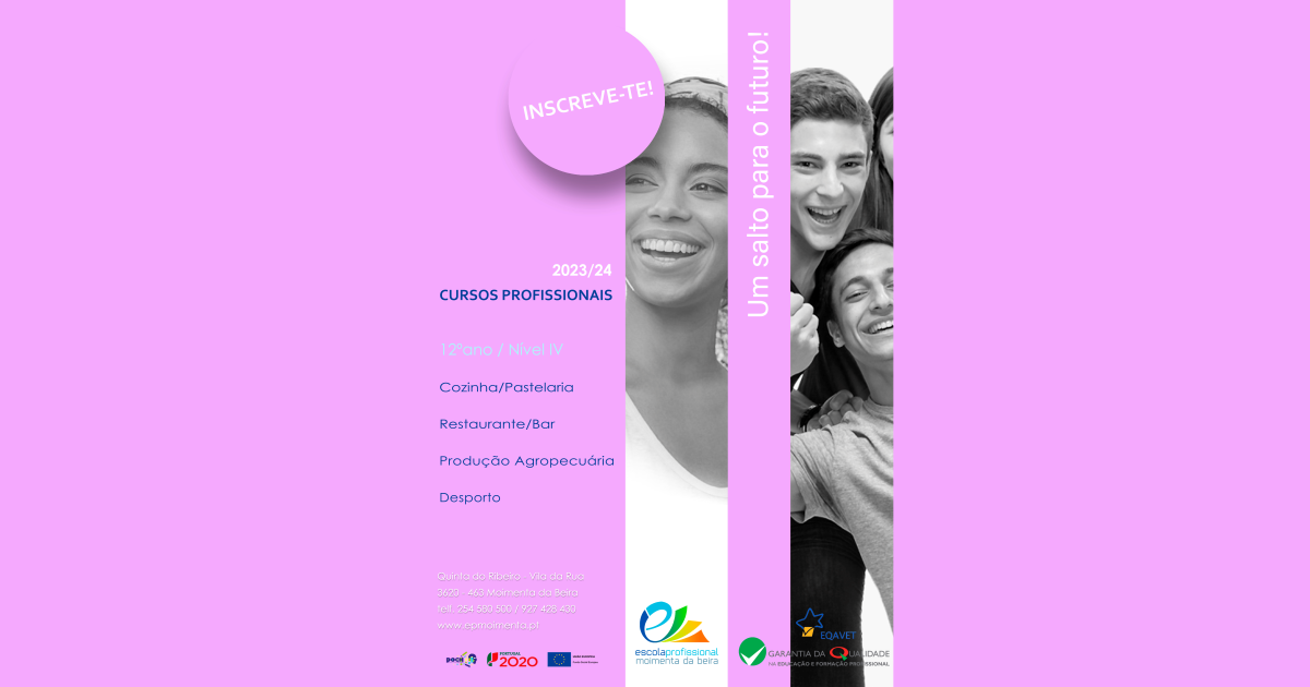 Encontram-se abertas as inscrições para o próximo ano letivo 2023/2024 na Escola Profissional de Moimenta da Beira, sediada na Quinta do Ribeiro, freguesia de Vila Rua. São quatro os cursos profissionais de nível IV, que dão equivalência ao 12º ano: