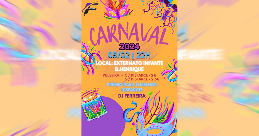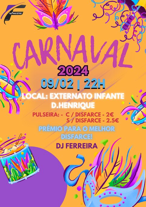 A comissão de finalistas da Escola Profissional de Moimenta da Beira vai promover, amanhã, dia 9 de fevereiro, uma festa de Carnaval aberta a toda a comunidade. O evento iniciará às 22 horas no Externato Infante D. Henrique e será animado por DJ Ferreira.