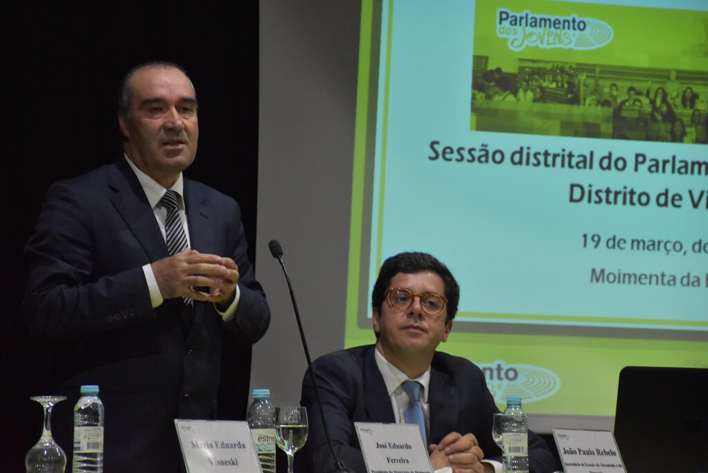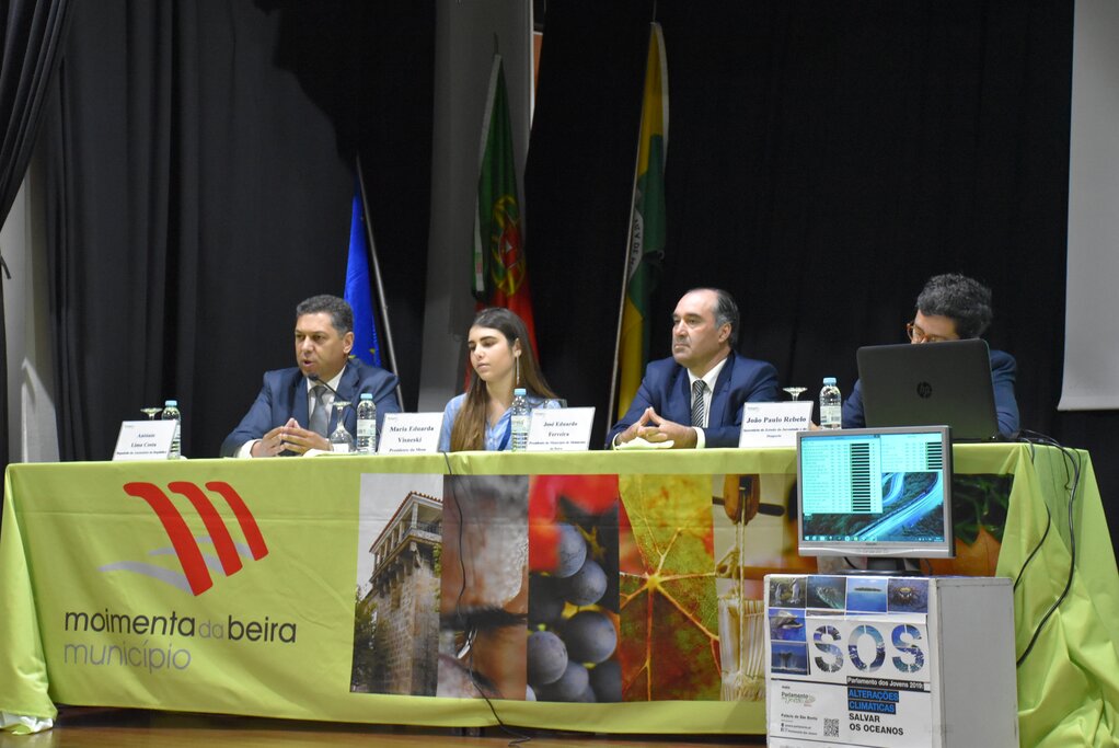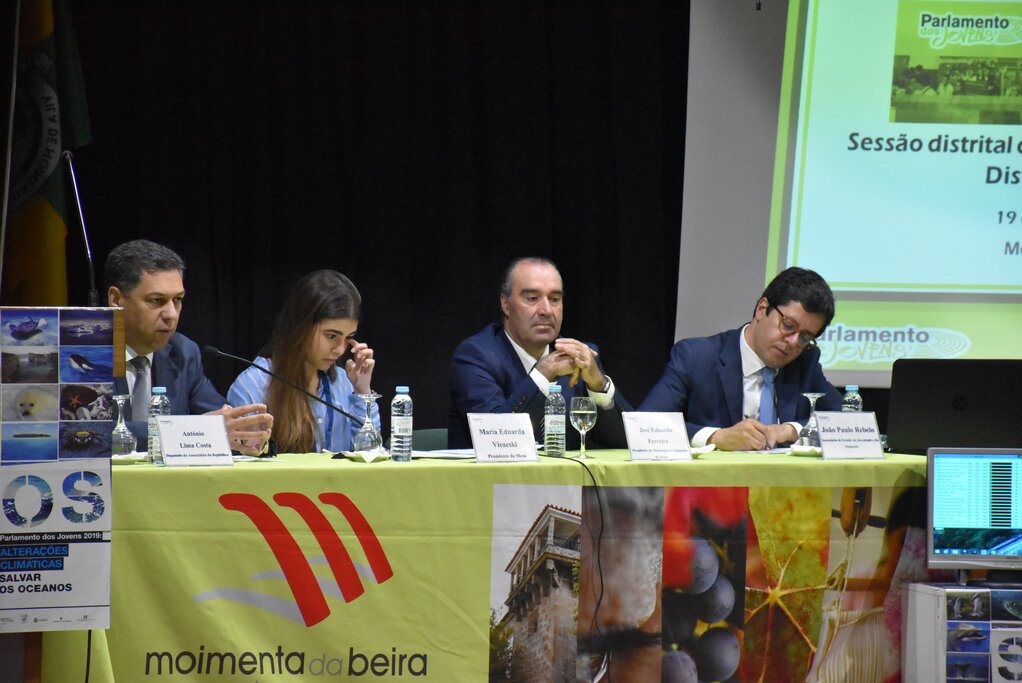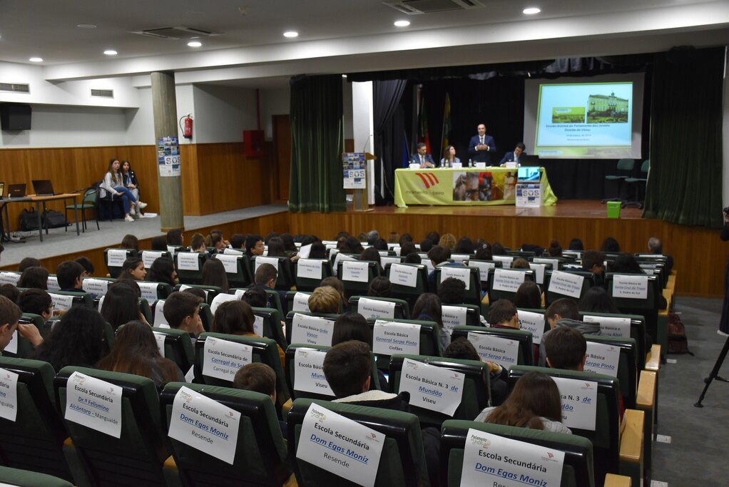 Vinte e oito escolas do distrito de Viseu (ver lista em baixo) e mais de 150 participantes, entre alunos, professores e dirigentes, estão envolvidos na final distrital do Parlamento dos Jovens do Ensino Básico que está a decorrer hoje, terça-feira, 19 de março, no Auditório Municipal Padre Bento da Guia, em Moimenta da Beira. A iniciativa é da Assembleia da República, com o apoio do Instituto Português do Desporto e da Juventude (IPDJ) e o tema escolhido para discussão e reflexão dos alunos versa sobre as "Alterações Climáticas: Salvar os Oceanos". António Lima Costa, o deputado que na sessão de Moimenta da Beira está a representar o Parlamento, respondeu durante o período da manhã às perguntas suscitadas pelos alunos. No período da tarde, avança a discussão e reflexão sobre o tema escolhido, após o qual serão eleitos os estudantes que participarão nas sessões nacionais que vão decorrer na Assembleia da República nos dias 6 e 7 de maio. Estas sessões proporcionam aos jovens eleitos nas escolas a vivência de uma sessão parlamentar, com uma metodologia de debate semelhante à do Parlamento.