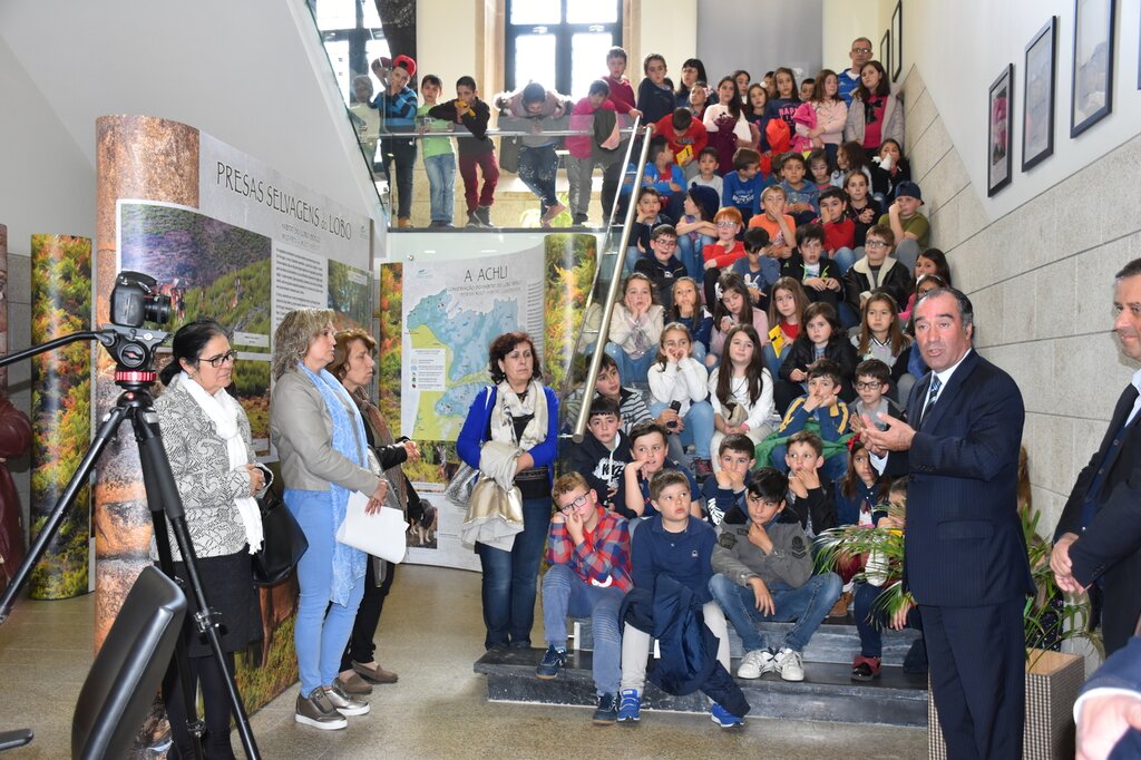 À hora da inauguração oficial da mostra “O Lobo Ibérico em Portugal” o espaço encheu-se de crianças e foi pequeno para o momento transformado em festa e sessão de sensibilização para a defesa e conservação de uma espécie em perigo de extinção. A cerimónia inaugural foi esta quinta-feira, 3 de maio, no átrio da Câmara Municipal de Moimenta da Beira, onde a exposição vai estar patente ao público até dia 30 deste mês. Depois, vai andar em itinerância pelo país.