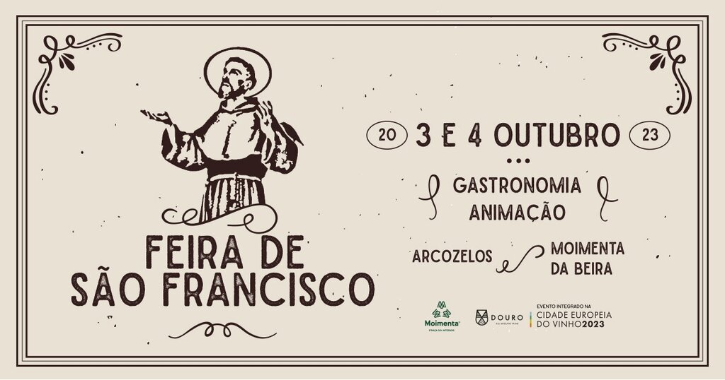 A Feira de S. Francisco (santo protetor dos animais e padroeiro da ecologia) vai realizar-se nos dias 3 e 4 de outubro nas proximidades do cruzamento de S. Francisco, perto do Convento homónimo, na confluência das estradas nacionais 226 e 323, em terrenos da freguesia dos Arcozelos, em Moimenta da Beira.