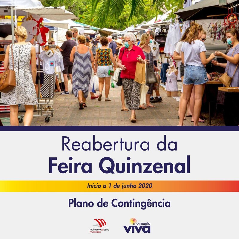 Vai reabrir, na próxima segunda-feira, dia 1 de Junho, a Feira Quinzenal em Moimenta da Beira. Mas a reabertura, no contexto do regresso à normalidade do funcionamento das atividades económicas, neste caso das feiras e mercados, está condicionada ao cumprimento de um conjunto de regras constantes do Plano de Contingência que acaba de ser aprovado por Despacho do Presidente da Câmara Municipal de Moimenta da Beira, José Eduardo Ferreira.