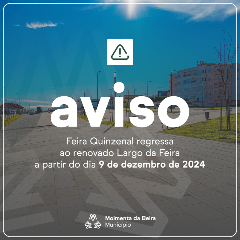 Concluídas as obras de requalificação, o Município de Moimenta da Beira informa que, a partir do dia 9 de dezembro de 2024, as Feiras Quinzenais estão de volta ao renovado Largo da Feira, nas imediações dos Paços do Concelho.