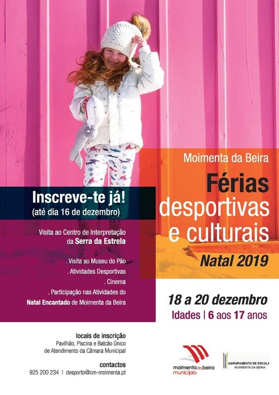 O programa está fechado e as inscrições abertas. As Férias Desportivas e Culturais, Natal 2019, promovidas pela Câmara Municipal de Moimenta da Beira em parceria com o Agrupamento de Escolas, vão decorrer de 18 a 20 de dezembro, e destinam-se a um público-alvo que abarca as crianças e jovens do concelho de Moimenta da Beira com idades compreendidas dos 6 aos 17 anos.