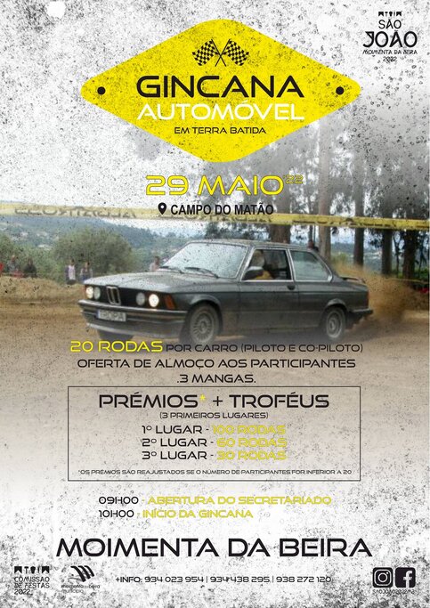 Depois do Torneio da Malha, este domingo que passou, segue-se a Gincana Automóvel (em terra batida), também no Campo do Matão, no próximo domingo, 29 de maio, a partir das 10 horas. O Secretariado abre uma hora antes.