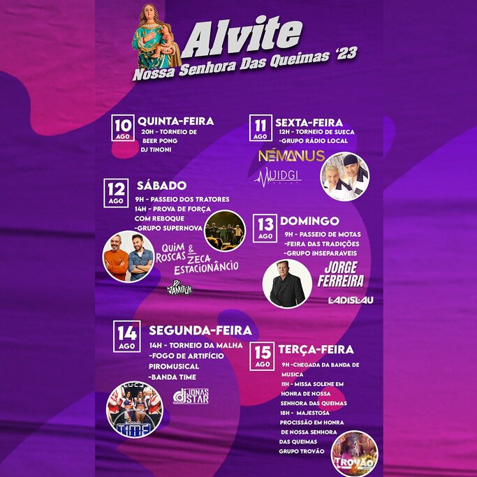 Já no próximo domingo, dia 13, Caria honrará a Nossa Senhora da Guia com as celebrações religiosas.