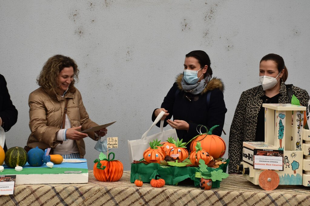 Já para a escolha da mais original, a organização fez uma seleção aleatória de um pequeno grupo para a constituição do júri que, entre imensas abóboras minúsculas das mais variadas formas, acabou por escolher duas, unidas em forma de flor, como duas gémeas siamesas, que deram o prémio de originalidade a Rosária Almeida, de Aldeia de Nacomba. “Já a tinha em cima de um móvel porque pensei que o concurso tinha sido na semana passada, mas depois soube que era hoje, trouxe-a logo”.
