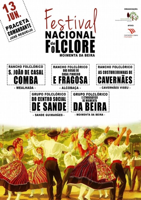 Cinco grupos de folclore do centro e norte do país - Mealhada, Alcobaça, Viseu, Guimarães e Moimenta da Beira - participam este sábado à noite (21 horas), 13 de junho, na Praceta Comandante Requeijo, em Moimenta da Beira, no Festival Nacional de Folclore organizado pela “Sucesso da Memória”, Associação de Desenvolvimento Local e Rural, em colaboração com a Câmara Municipal e integrado no programa das Festas de S. João.