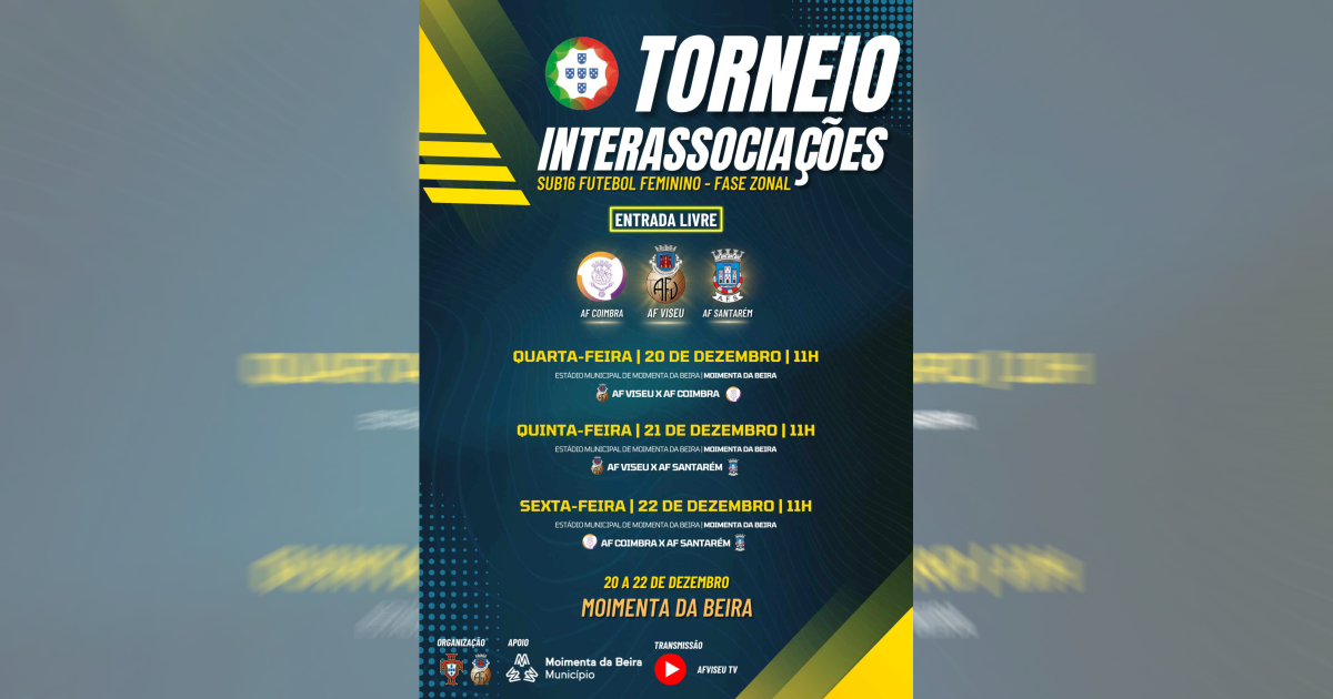 O Torneio Interassociações SUB-16 é uma competição organizada pela Federação Portuguesa de Futebol (FPF), em colaboração com a AF Viseu e o apoio empenhado da Câmara Municipal de Moimenta da Beira. O evento desportivo será transmitido pela AFViseu TV.