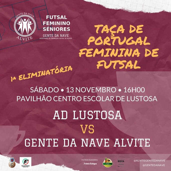 Pela 1ª vez na história uma equipa feminina de Futsal do concelho de Moimenta da Beira disputa a Taça de Portugal da modalidade. É a formação sénior “Gente da Nave”, de Alvite, que amanhã, sábado, 13 novembro, pelas 16 horas, vai jogar em casa da AD Lustosa, do concelho de Lousada, a 1ª eliminatória da Taça de Portugal Feminina de Futsal.