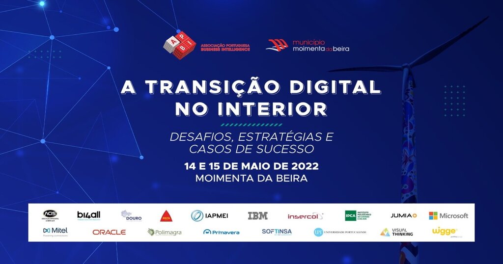 Consultores e líderes nacionais, CEOs, administradores, diretores-gerais, representantes e diretores de grandes empresas tecnológicas como a Microsoft, a IBM/Softinsa, Mitel, Oracle, entre outras, vão participar na conferência “A Transição Digital no Interior - Desafios, estratégias e casos de Sucesso”, que terá lugar em Moimenta da Beira nos próximos dias 14 e 15 de maio. Trata-se de uma organização conjunta entre a Associação Portuguesa de Business Intelligence (APBI) e a Câmara Municipal de Moimenta da Beira. A Secretária de Estado do Desenvolvimento Regional, Isabel Ferreira, abre o evento às 14h30.
