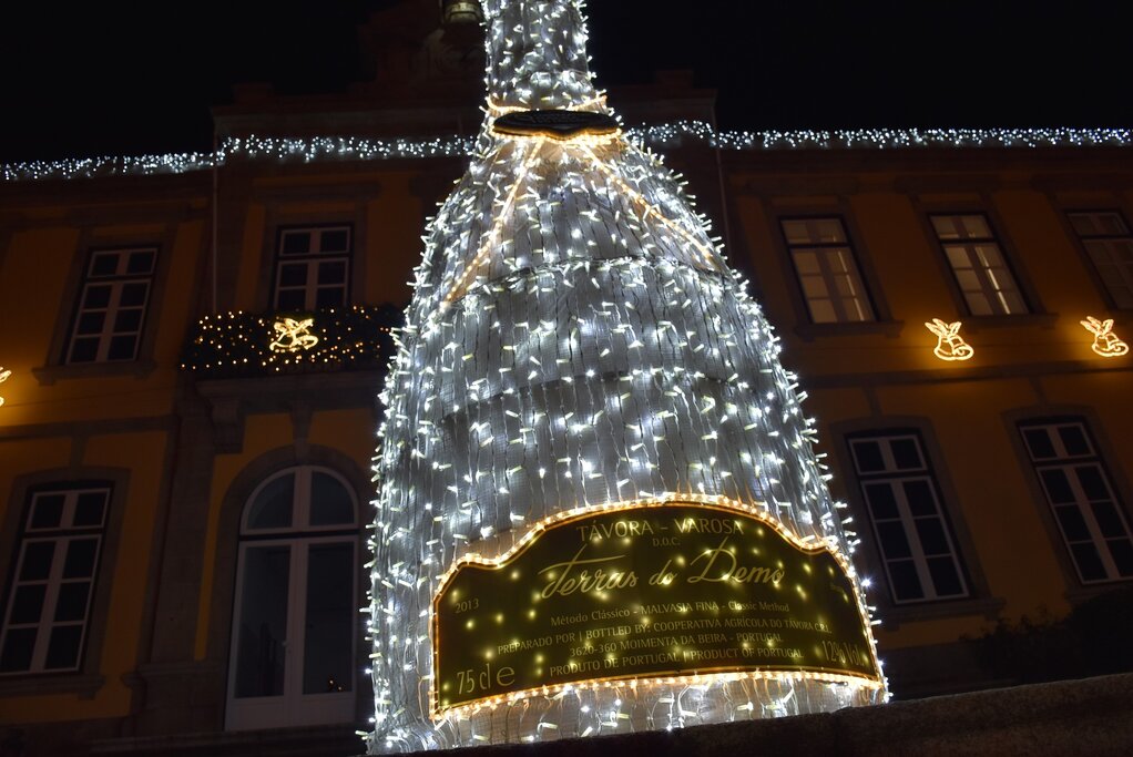 A iluminação foi inaugurada esta sexta-feira, 6 de dezembro. E o som ambiente também. Mas às luzes e à música natalícia voltou a juntar-se um ícone maior de Moimenta da Beira, iluminado também. Quatro metros é quanto tem de altura esse símbolo grande que é o espumante Terras do Demo.
