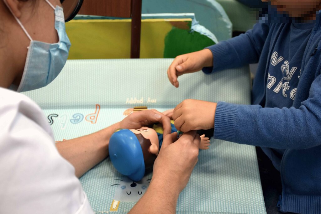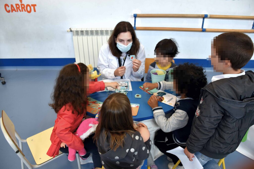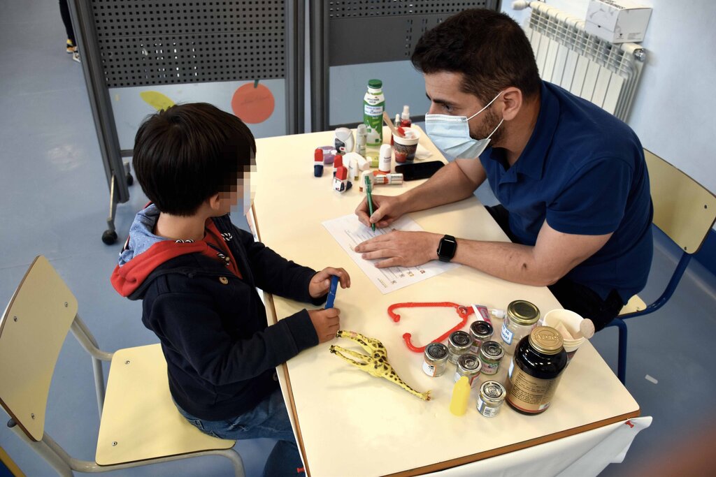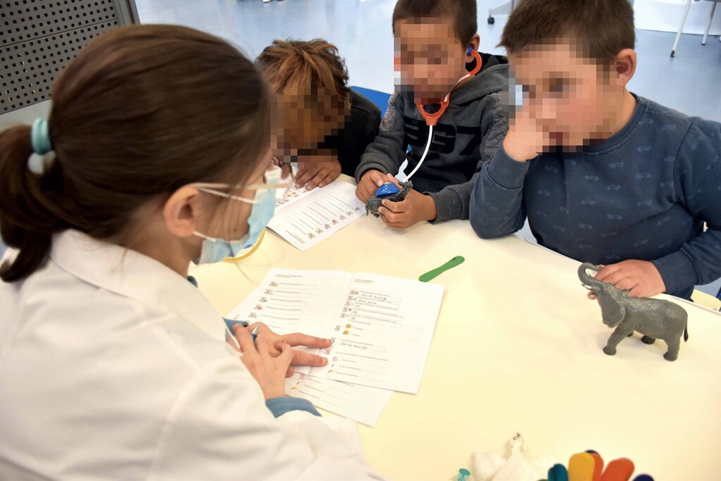 Também há febres, dores de cabeça, o Picachu tem dores de barriga e vómitos, pés e pernas partidas (grande tombo deu o boneco do Lucas) e, de acordo com a médica, até já apareceram infeções urinárias. As crianças auscultam, testam reflexos, palpam barrigas, veem o interior dos ouvidos, garganta, para descartar alterações alarmantes. No fim, fazem o diagnóstico. Xaropes, comprimidos, exames, todos os tratamentos, incluindo testes à Covid. A médica parece divertir-se no contato com eles. Explica que “tudo tem corrido muito bem” e que esta atividade já decorreu em hospitais, mas a ideia foi adaptá-la ao centro de saúde. Com sucesso!