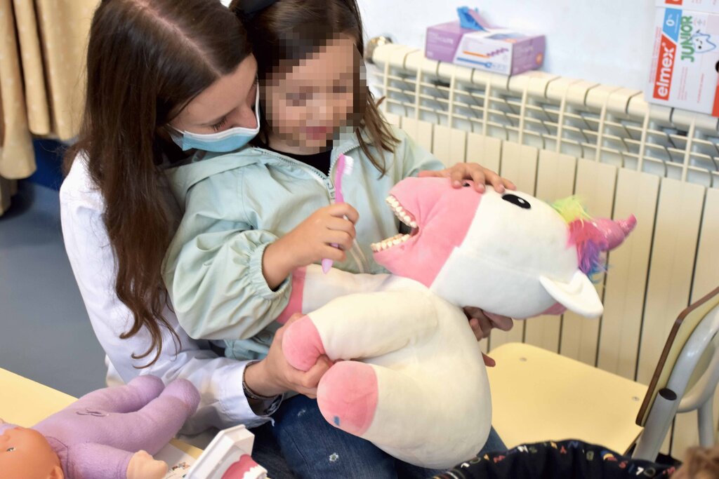 Os colaboradores também se dizem entusiasmados. Para uns, alunos do terceiro ano da Escola Superior de Saúde, é a primeira experiência do género. “É muito engraçado e gratificante, sobretudo para quem gosta de crianças”, admite Sofia. Para outros, do quarto ano de Medicina Dentária, por exemplo, lidar com os mais pequenos já não é novidade. Ensinar a lavar os dentes e quantas vezes ao dia, é importante porque muitos deles estão agora a começar a fazê-lo sozinhos. E há uma enorme dentadura e escovas para experienciar uma lavagem correta.