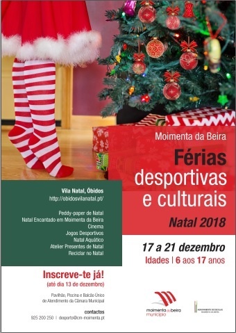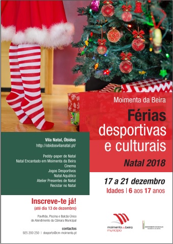 Estão abertas, até dia 13 de dezembro, as inscrições para as Férias Desportivas e Culturais do Natal 2018 destinadas às crianças e jovens do concelho de Moimenta da Beira com idades compreendidas entre os 6 e os 17 anos.