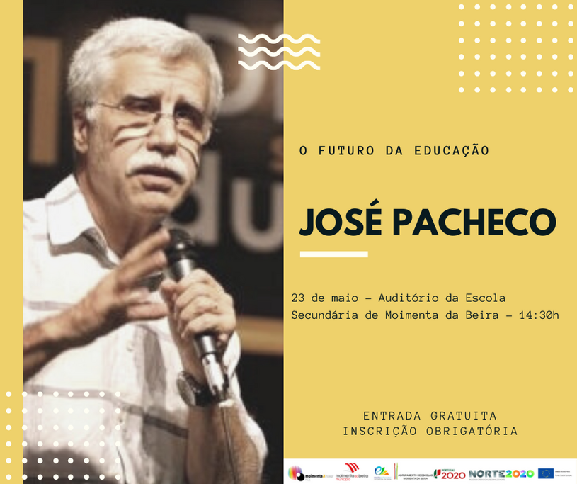 "O Futuro da Educação". É o tema da palestra que será dinamizada por José Pacheco, na próxima segunda-feira, 23 de maio, pelas 14h30, no auditório da Escola Secundária de Moimenta da Beira. As inscrições, limitadas aos lugares existentes, embora gratuitas, são obrigatórias e estão abertas.