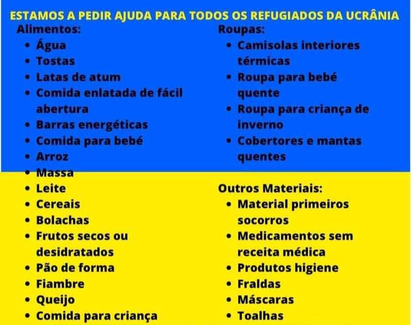 De segunda a sexta-feira, das 9h00 às 17h30, a Junta de Freguesia de Moimenta da Beira recolhe dos moimentenses que quiserem ajudar, bens de primeira necessidade para auxílio ao povo Ucraniano.