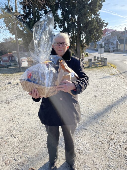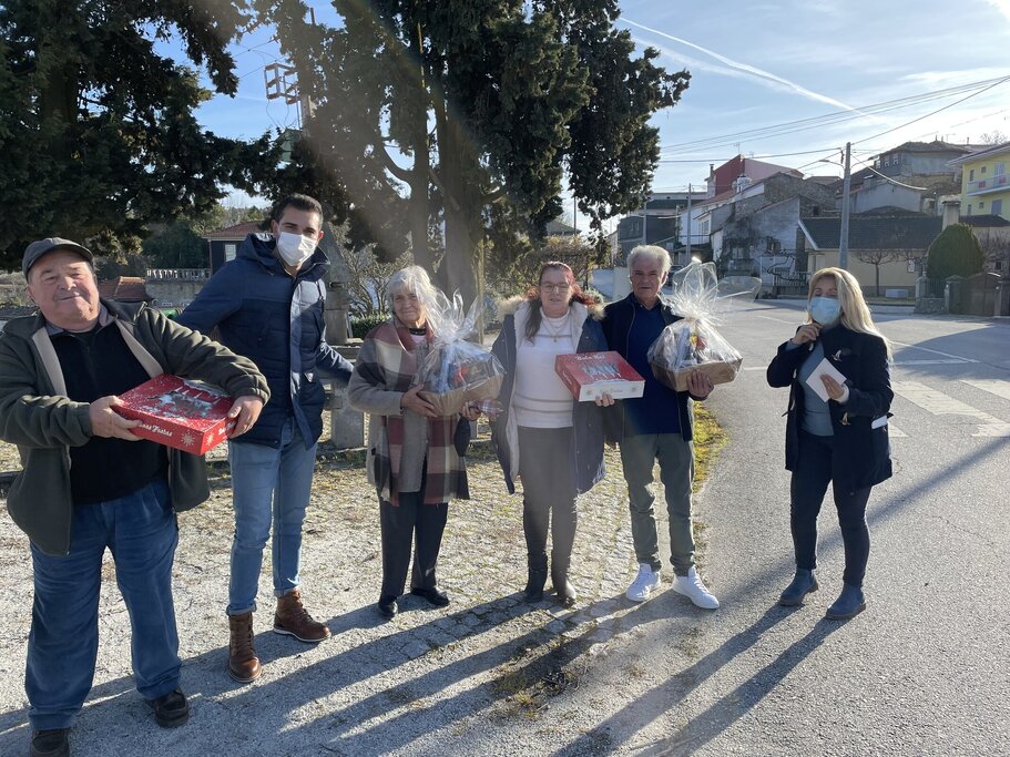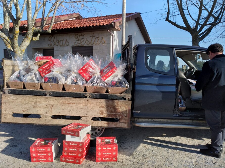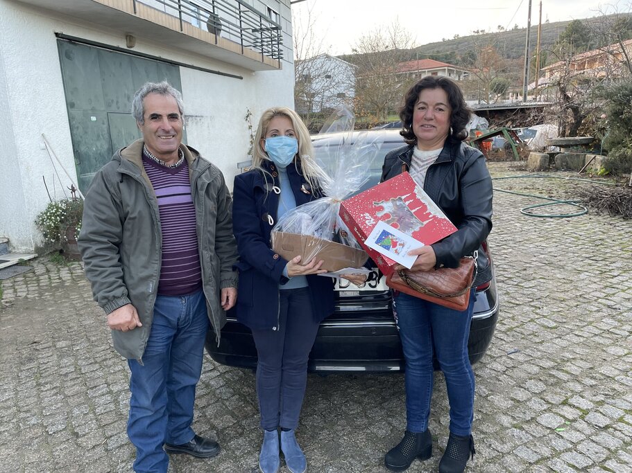 No cabaz, levaram o tradicional bacalhau, queijo, azeite, bolachas, chouriça, vinho do Porto, um bolo-rei, entre outros produtos. Um gesto de partilha comunitária que muito agradeceram! As crianças também foram presenteadas com um cheque brinde.