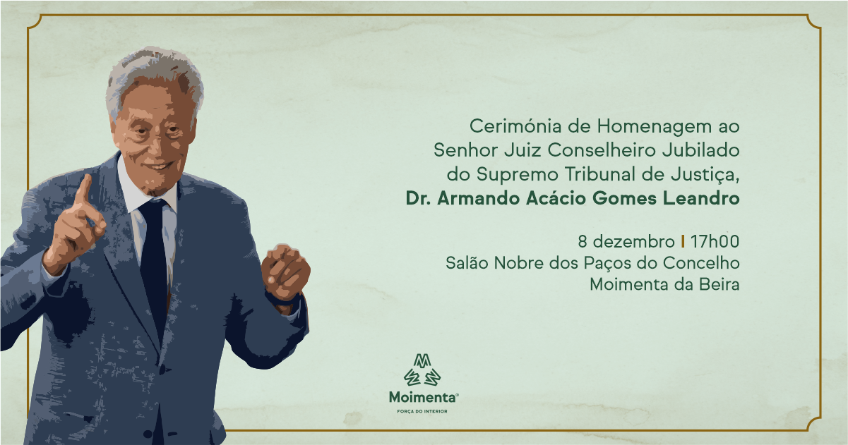 A opinião é unânime em Portugal: Não há maior autoridade no direito de menores e da família. Homem impoluto, cidadão exemplar com um percurso de vida e uma causa de sempre, as crianças e os jovens, Armando Acácio Gomes Leandro, moimentense do coração, vai ser homenageado pela Câmara Municipal de Moimenta da Beira e pela Magistratura portuguesa. É um tributo justíssimo!