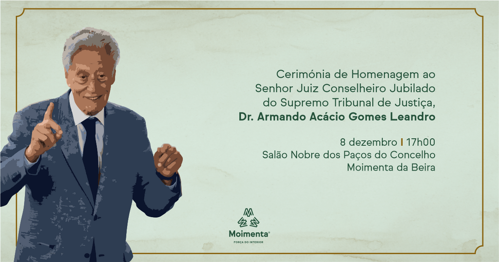 O Presidente da Câmara Municipal de Moimenta da Beira, Paulo Figueiredo, justifica a homenagem “pelo percurso de uma vida íntegra e intocável, pela personalidade humanista e a excelência de um ser humano e um magistrado superior que aprecia e eleva o conhecimento para depois o repartir entre os pares, e pelos laços fraternos e genuínos que sempre manteve com o nosso Município e as suas gentes”.