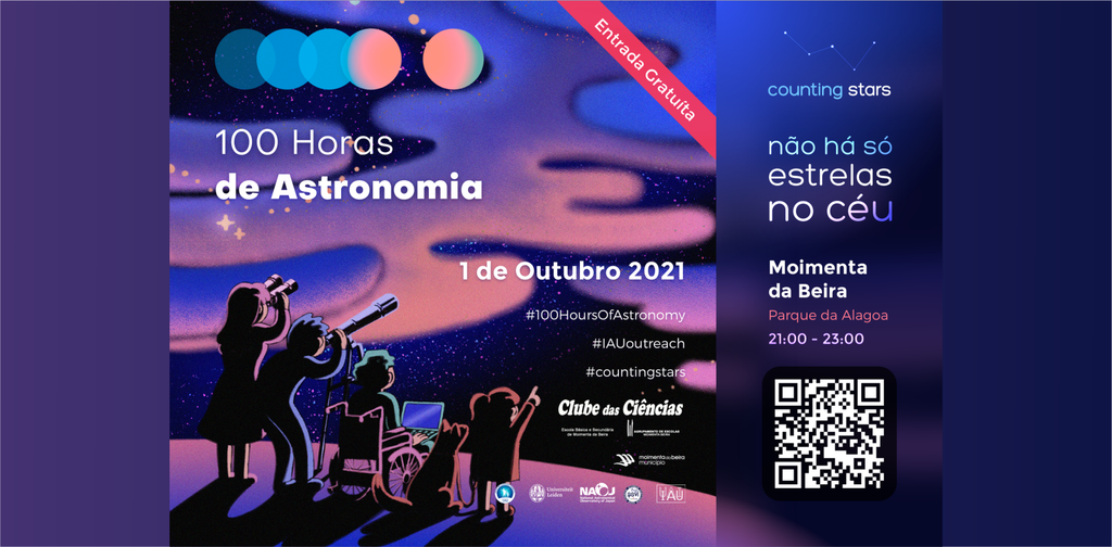 “100 Horas de Astronomia” é o nome do evento, promovido pela União Astronómica Internacional (UAI/IAU), e “Não Há Só Estrelas no Céu" é o nome da atividade que vai ocorrer, em simultâneo, hoje, sexta-feira, dia 1 de outubro, das 21h00 às 23h00, naqueles oito locais. Em Moimenta da Beira a ação, organizada pelo Clube das Ciências da Escola Básica e Secundária, vai acontecer no Parque da Alagoa, junto à pista de Skates.